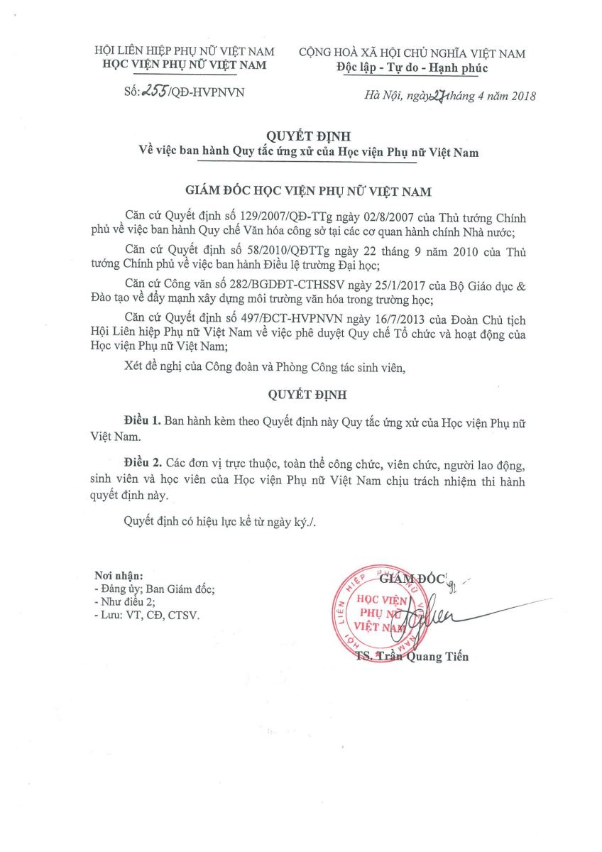 Quyết định Ban hành Quy tắc ứng xử Học viện
