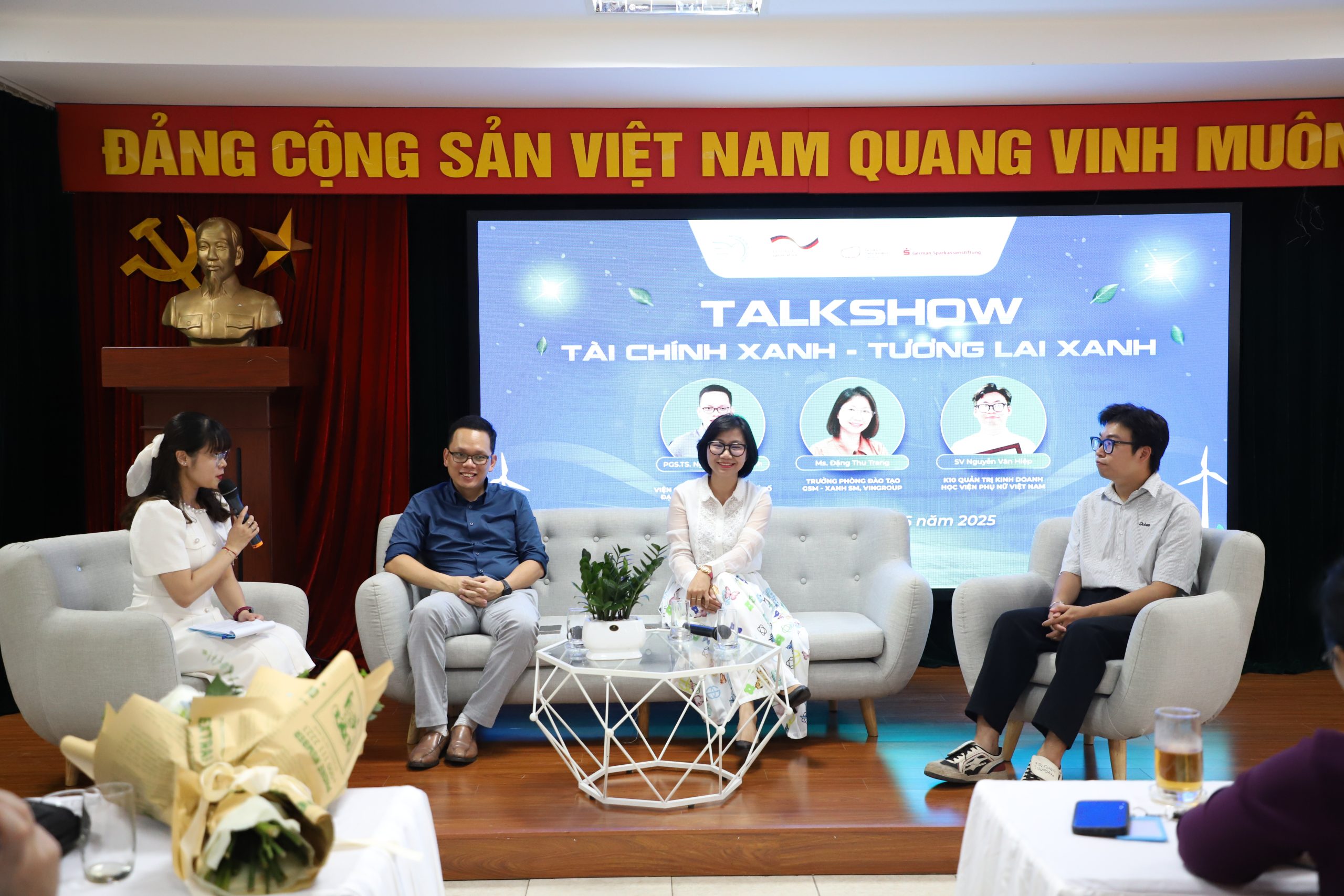 Nội dung talkshow xoay quanh các chủ đề cốt lõi: khái niệm và giá trị của tài chính xanh, khả năng ứng dụng vào đời sống sinh viên, mô hình khởi nghiệp xanh và hành trình xây dựng cộng đồng tài chính xanh tại các cơ sở giáo dục.