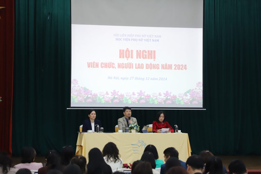 Sáng ngày 27/12/2024, Học viện Phụ nữ Việt Nam đã tổ chức Hội nghị viên chức, người lao động năm 2024 trong không khí trang trọng và phấn khởi. Đây là dịp để toàn thể cán bộ, viên chức và người lao động Học viện nhìn lại một năm hoạt động hiệu quả, khẳng định những kết quả nổi bật và đề ra phương hướng phát triển trong năm 2025.