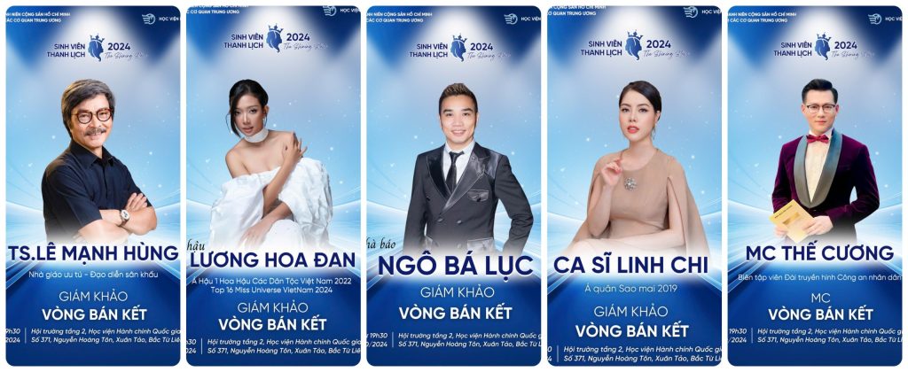 Cuộc thi “Sinh viên Thanh lịch 2024” đang tiến gần hơn đến vòng bán kết, diễn ra vào lúc 19h00 ngày 25/10/2024 tại Hội trường tầng 2, Học viện Hành chính Quốc gia, Hà Nội. Đây là sự kiện được mong chờ, không chỉ bởi các phần thi hấp dẫn mà còn nhờ sự góp mặt của Ban giám khảo đầy kinh nghiệm và uy tín. Vòng bán kết năm nay sẽ có sự tham gia của bốn vị giám khảo khách mời danh tiếng, hứa hẹn mang đến những đánh giá công tâm và khách quan, giúp chọn ra những thí sinh xuất sắc nhất để bước vào vòng chung kết.
