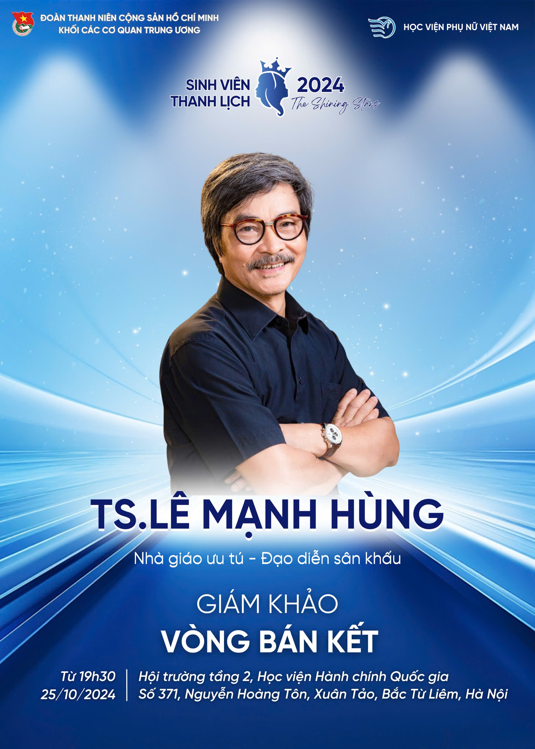 Tiến sĩ Lê Mạnh Hùng là một trong những cái tên nổi bật trong giới nghệ thuật và giảng dạy nghệ thuật. Ông là một Nhà giáo ưu tú hiện đang giảng dạy tại Trường Đại học Sân khấu – Điện ảnh Hà Nội với nhiều đóng góp quan trọng trong lĩnh vực sân khấu. Không chỉ giảng dạy, ông còn là một đạo diễn sân khấu tài năng, đã đạo diễn và viết kịch bản cho nhiều vở diễn thành công. Sự tận tâm và niềm đam mê với nghề đã giúp TS. Lê Mạnh Hùng truyền lửa cho nhiều thế hệ học trò, đồng thời góp phần quan trọng trong việc phát hiện và đào tạo nhân tài. Với bề dày kinh nghiệm trong việc chỉ đạo nghệ thuật và đào tạo, TS. Lê Mạnh Hùng được kỳ vọng sẽ mang lại những góc nhìn sắc sảo, tinh tế trong việc đánh giá các thí sinh tại vòng bán kết.
