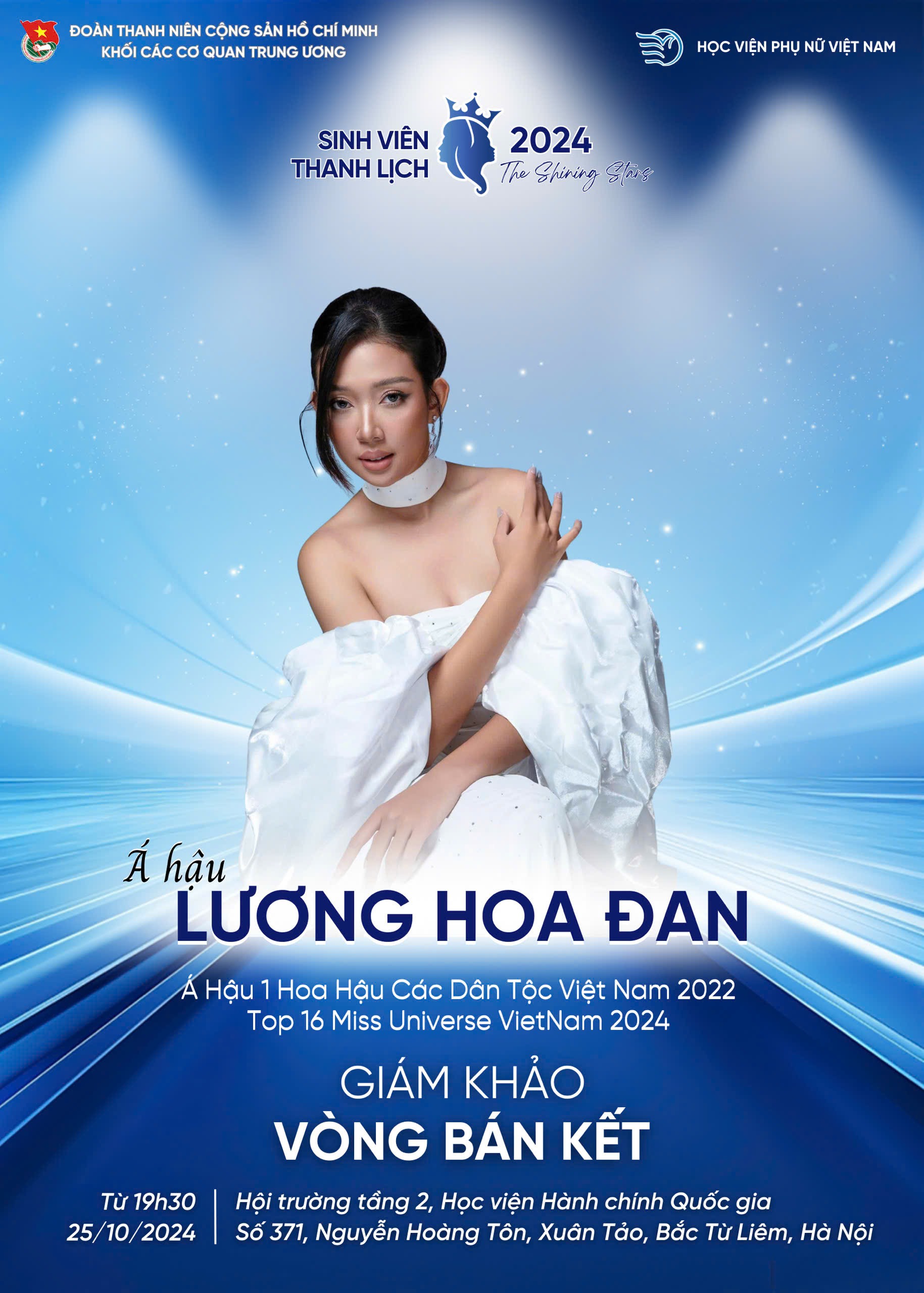 Á hậu Lương Hoa Đan, người đẹp đạt giải Á hậu 1 tại cuộc thi Hoa hậu các Dân tộc Việt Nam 2024, cũng sẽ là một trong những giám khảo đặc biệt tại vòng bán kết. Với kinh nghiệm thi đấu tại các cuộc thi sắc đẹp lớn như Miss Universe Việt Nam 2024, Lương Hoa Đan không chỉ sở hữu nhan sắc nổi bật mà còn mang đến sự thanh lịch, duyên dáng và hiểu biết sâu sắc về các tiêu chí sắc đẹp hiện đại. Sự tham gia của cô sẽ giúp các thí sinh có thêm cơ hội học hỏi từ những kinh nghiệm quý báu của một người đã từng trải qua những vòng thi khắc nghiệt. Á hậu Lương Hoa Đan sẽ đưa ra những đánh giá khách quan, chuyên nghiệp, giúp ban tổ chức tìm ra những thí sinh không chỉ đẹp về ngoại hình mà còn thanh lịch, thông minh và bản lĩnh.
