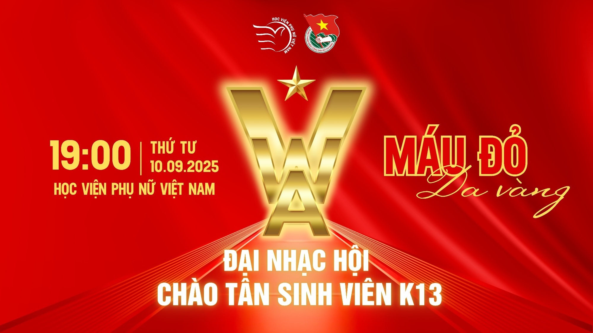 Trong không khí cả nước chào mừng 80 năm Quốc khánh của đất nước, với chủ đề “Máu đỏ da vàng”, Đại nhạc hội chào tân sinh viên K13, chào mừng năm học mới của Học viện Phụ nữ Việt Nam mang một ý nghĩa đặc biệt: Dù ở bất kỳ đâu, làm bất kỳ điều gì, trong mỗi trái tim sinh viên vẫn luôn chảy dòng máu tự hào dân tộc, là điểm tựa để vượt qua mọi thử thách và vươn tới thành công.