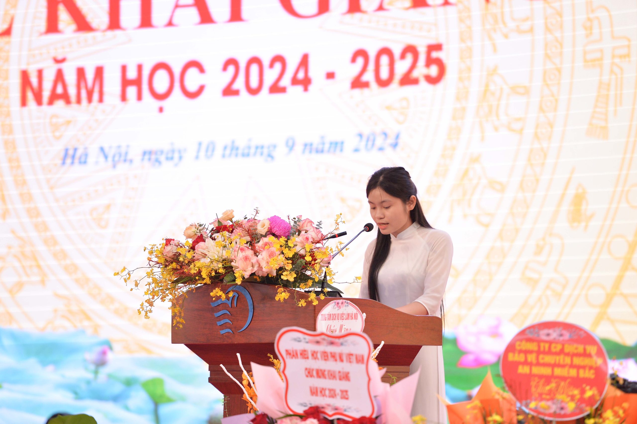 Tại lễ khai giảng, TS. Nguyễn Phi Long – Trưởng phòng Đào tạo đã trình bày Báo cáo tổng kết năm học 2023-2024. Báo cáo khẳng định những kết quả đáng tự hào của cả thầy và trò Học viện Phụ nữ Việt Nam trên tất cả các lĩnh vực chuyên môn. Trong đó, công tác đào tạo vẫn tiếp tục ghi dấu ấn với kết quả tuyển sinh đại học đạt chỉ tiêu với trên 1.800 tân sinh viên thuộc 11 ngành đào tạo. Điểm đầu vào tăng mạnh ở hầu hết các ngành, đặc biệt là các ngành Công tác xã hội, Luật kinh tế, Kinh tế, Quản trị kinh doanh (hệ Liên kết quốc tế) đều tăng từ 2.5 đến 7 điểm. Bên cạnh đó, Học viện cũng ghi dấu ấn đặc biệt khi lần đầu tiên tuyển sinh và đào tạo bậc tiến sỹ đối với 2 ngành học, mở thêm 02 chương trình đào tạo mới hệ đại học là Kinh tế số và Quản trị kinh doanh bằng Tiếng Anh; xây dựng, thẩm định, trình Bộ GD&ĐT cho phép đào tạo trình độ thạc sĩ Tâm lý học lâm sàng. Công tác tổ chức đào tạo được thực hiện nghiêm túc, khoa học, ứng dụng CNTT ngày càng cao thông qua chuyển đổi hệ thống quản lý đào tạo, hệ thống học tập trực tuyến và hệ thống khảo thí. Công tác nghiên cứu khoa học tiếp tục có sự gia tăng mạnh mẽ số lượng đề tài nghiên cứu với 16 đề tài của giảng viên và 61 đề tài sinh viên (2 cấp) được nghiệm thu bên cạnh hơn 80 đề tài của 2 nhóm đối tượng đang tiếp tục thực hiện. Gần 100% giảng viên hoàn thành xuất sắc nhiệm vụ năm học với tổng số sản phẩm khoa học được công bố đạt 354 công trình (96 công bố của sinh viên), trong đó có 10 công bố quốc tế đạt chuẩn. Các hoạt động kết nối và phục vụ cộng đồng tiếp tục có sự bứt phá khi có tới 150 lượt giảng viên, nhân viên và 1500 lượt sinh viên tham gia, tạo ra nhiều đóng góp ý nghĩa cho cộng đồng tại gần 20 tỉnh, thành phố dưới nhiều hình thức hoạt động đa dạng, hiệu quả. Đội ngũ giảng viên tiếp tục có sự trưởng thành nhanh chóng về số lượng và chất lượng, tổng số giảng viên có trình độ cao tăng nhanh, đến cuối năm học đạt 70 TS (trong đó có 8 PGS). Có thể khẳng định, đối chiếu theo những quy định hiện hành của nhà nước, Học viện đã đạt hầu hết các tiêu chuẩn đối với cơ sở giáo dục đại học có đào tạo tiến sỹ.