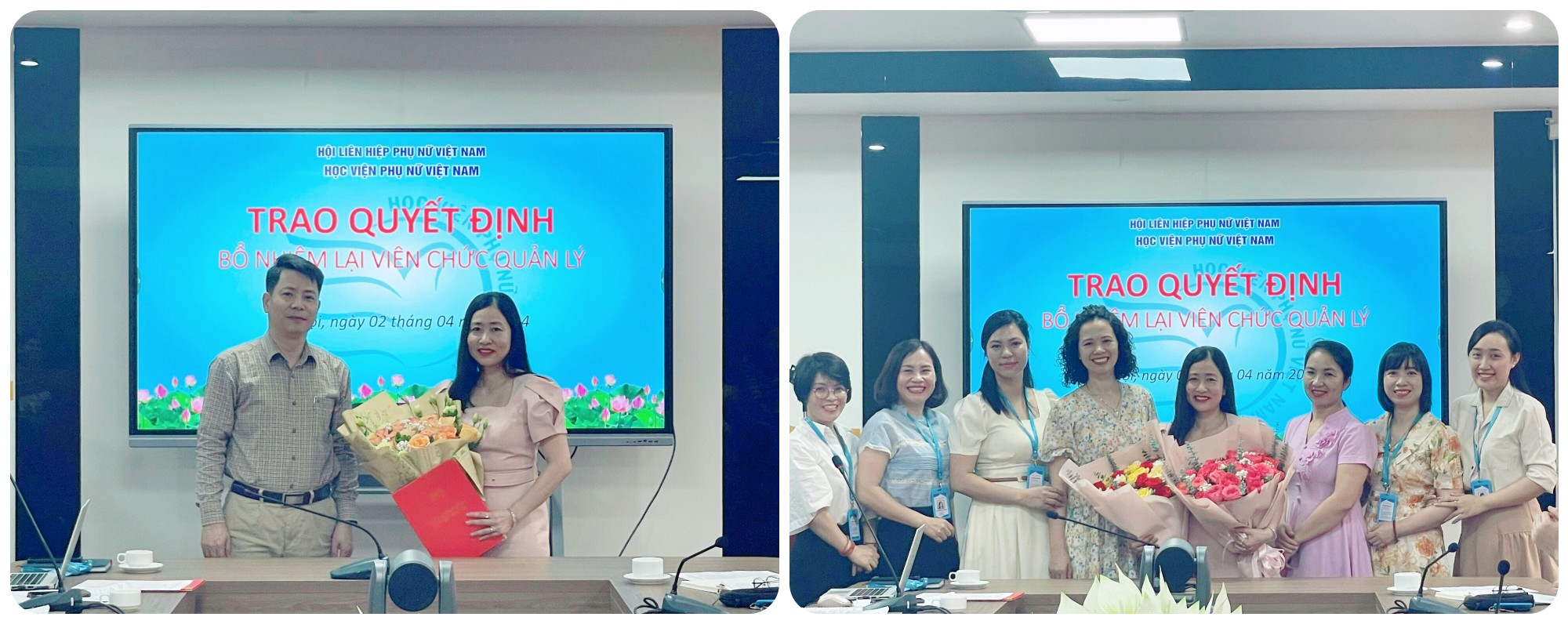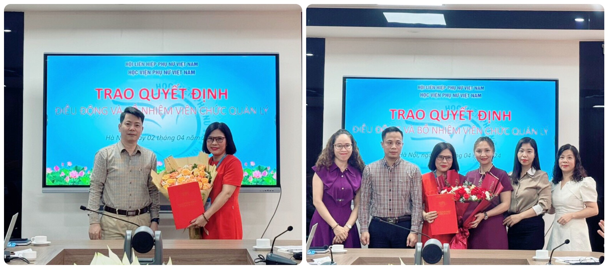 Các nhân sự được điều động, bổ nhiệm cảm ơn sự tin tưởng, tín nhiệm của Ban Giám đốc, tập thể cán bộ, viên chức của Học viện và hứa sẽ hoàn thành tốt nhiệm vụ được giao, đóng góp vào sự phát triển chung của Học viện Phụ nữ Việt Nam trong thời gian tới.
