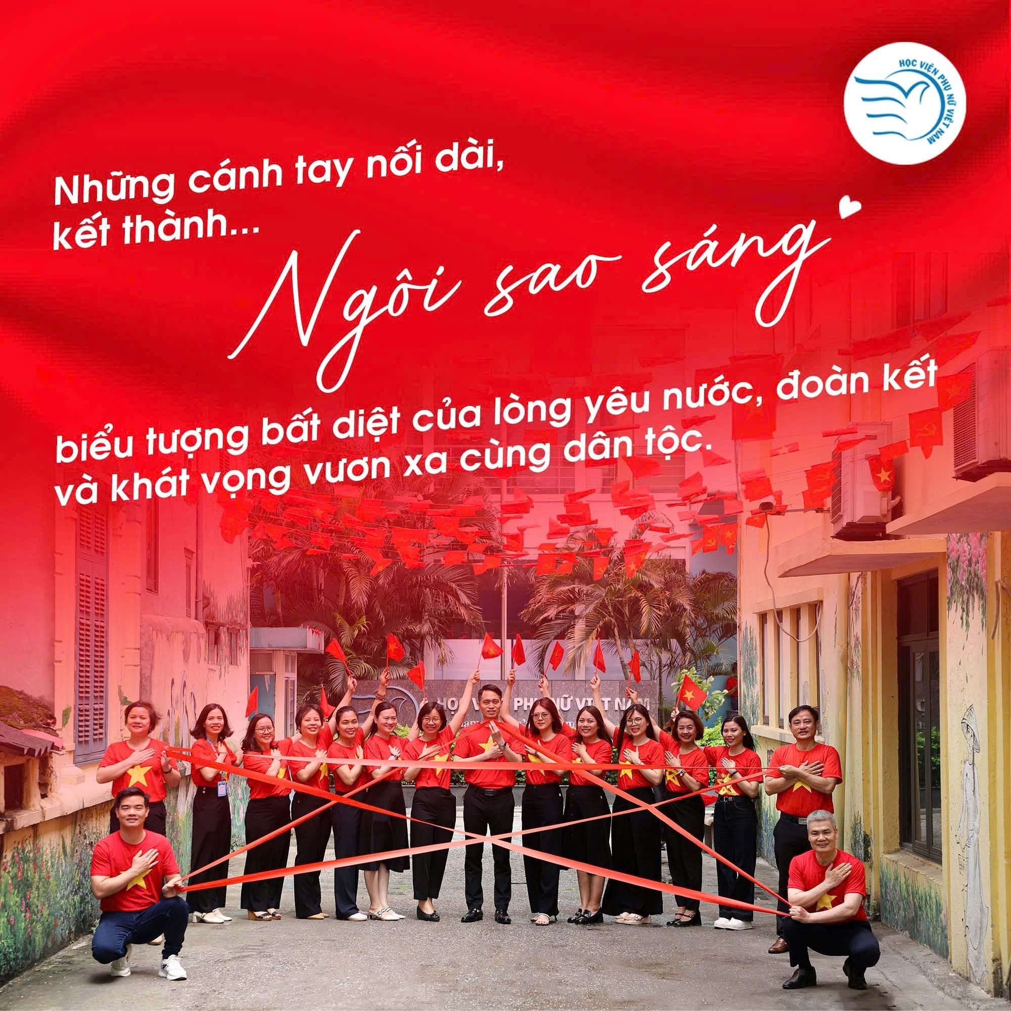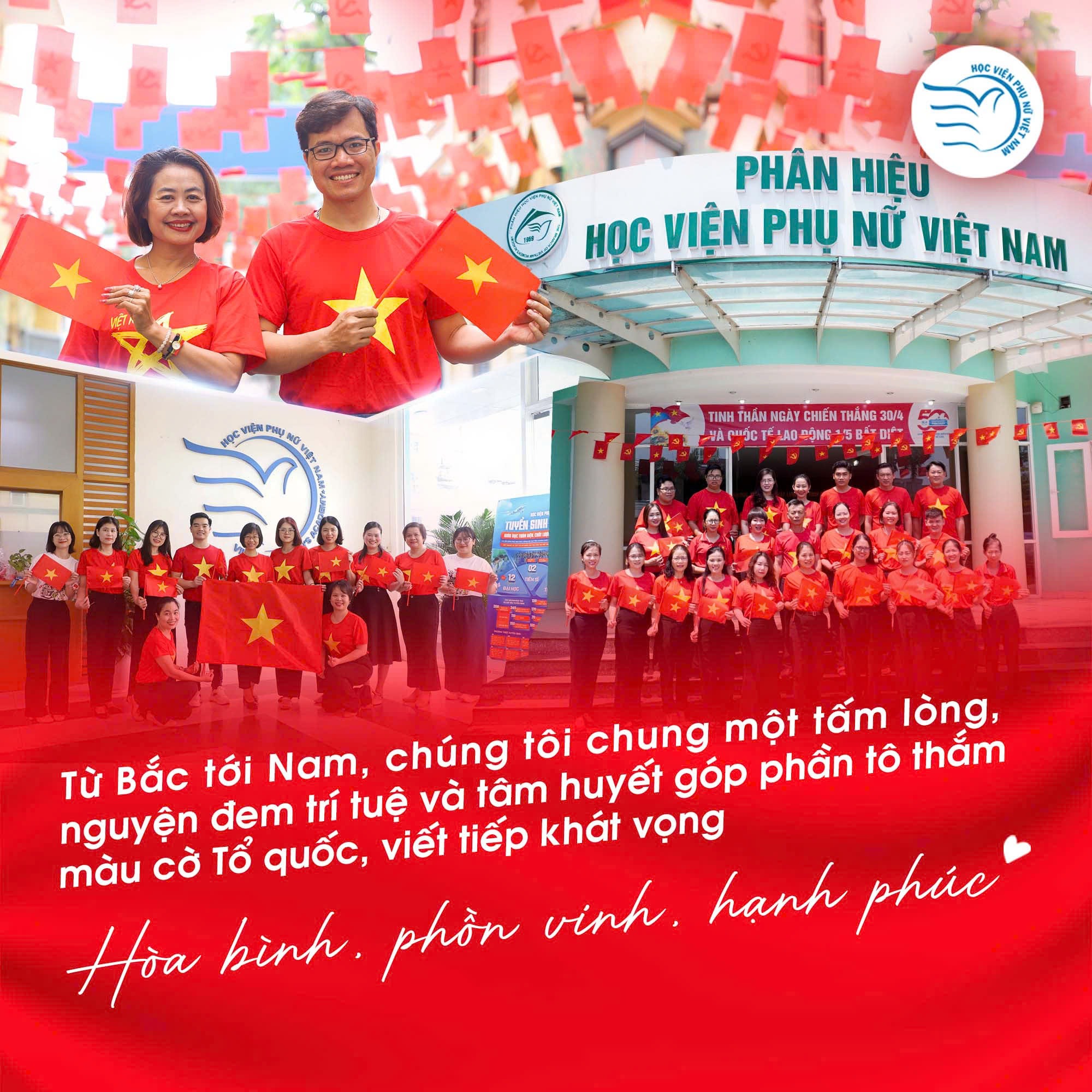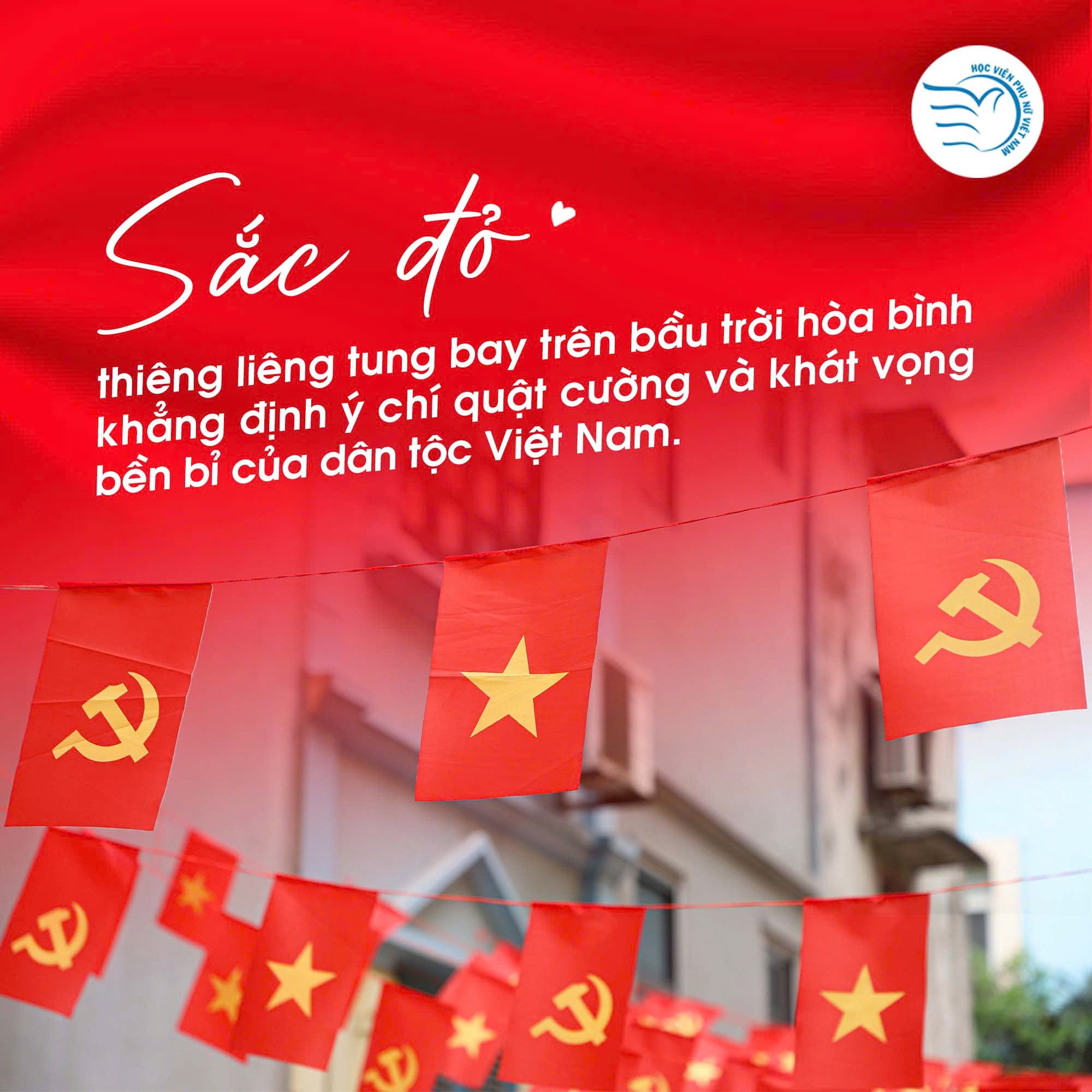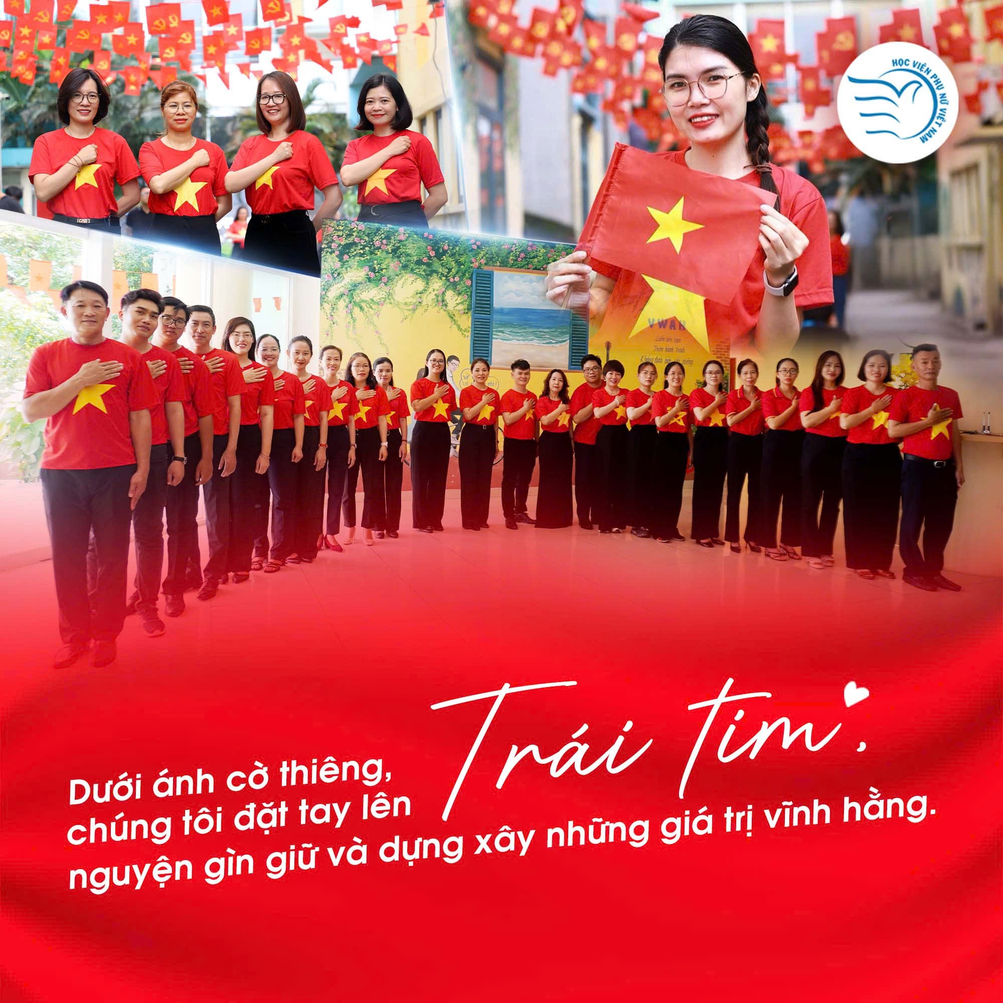 Từ yêu thương, đoàn kết đến sẻ chia, Học viện Phụ nữ Việt Nam đã và đang tạo nên một tập thể vững mạnh – nơi những trái tim đồng lòng vì sự phát triển của đất nước. Trong sắc đỏ rực rỡ của lá cờ, chúng tôi cùng nhau thắp sáng niềm tin vào một tương lai tươi sáng, nơi phụ nữ Việt Nam tiếp tục khẳng định vai trò, vị thế và những đóng góp to lớn trong mọi lĩnh vực của đời sống xã hội.