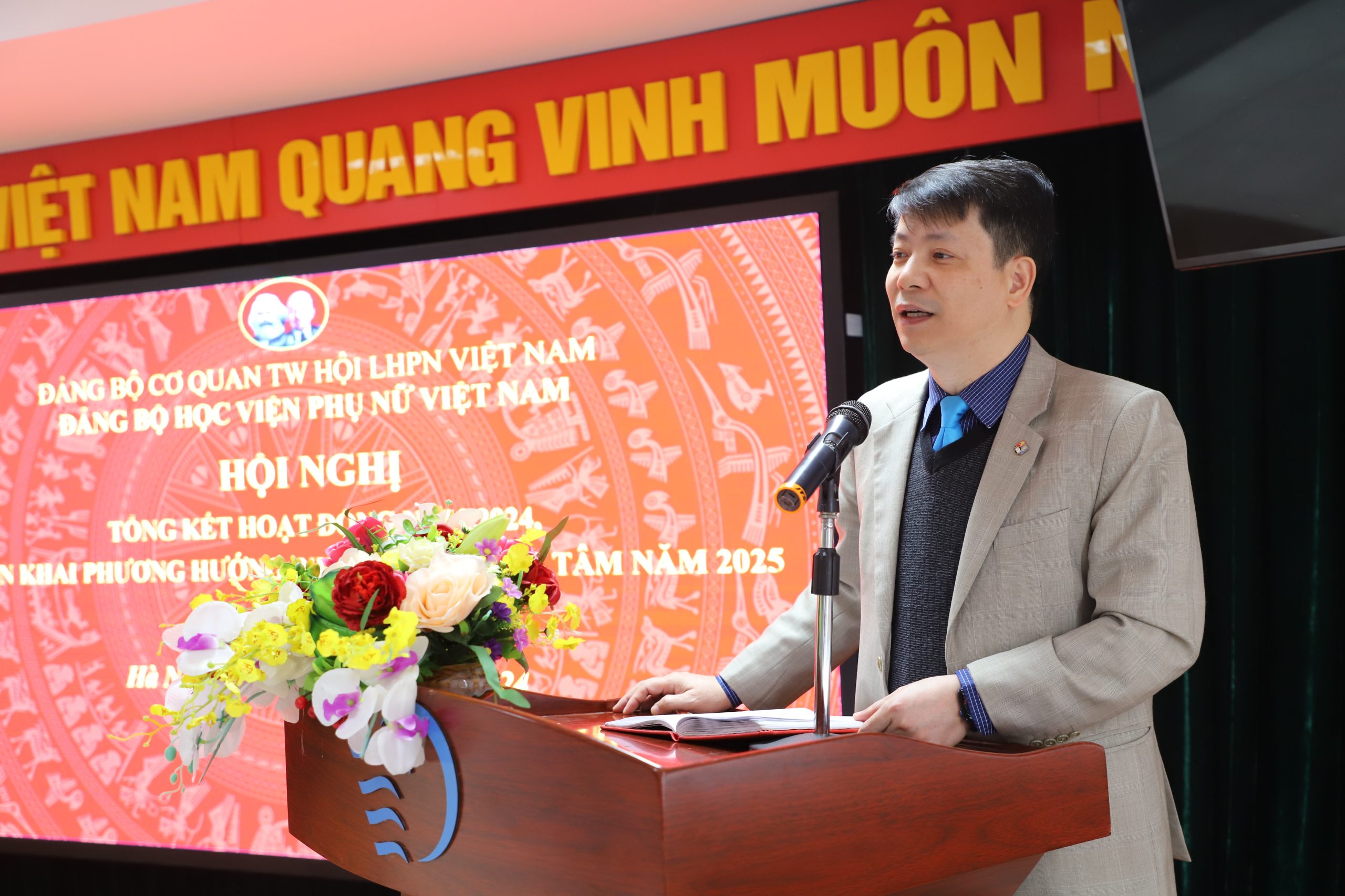 Mở đầu chương trình, đồng chí Nguyễn Phi Long, Phó Bí thư Đảng ủy Học viện, đã trình bày báo cáo tổng kết. Năm 2024, Đảng bộ Học viện đã đạt được nhiều thành tựu nổi bật trên các mặt công tác: