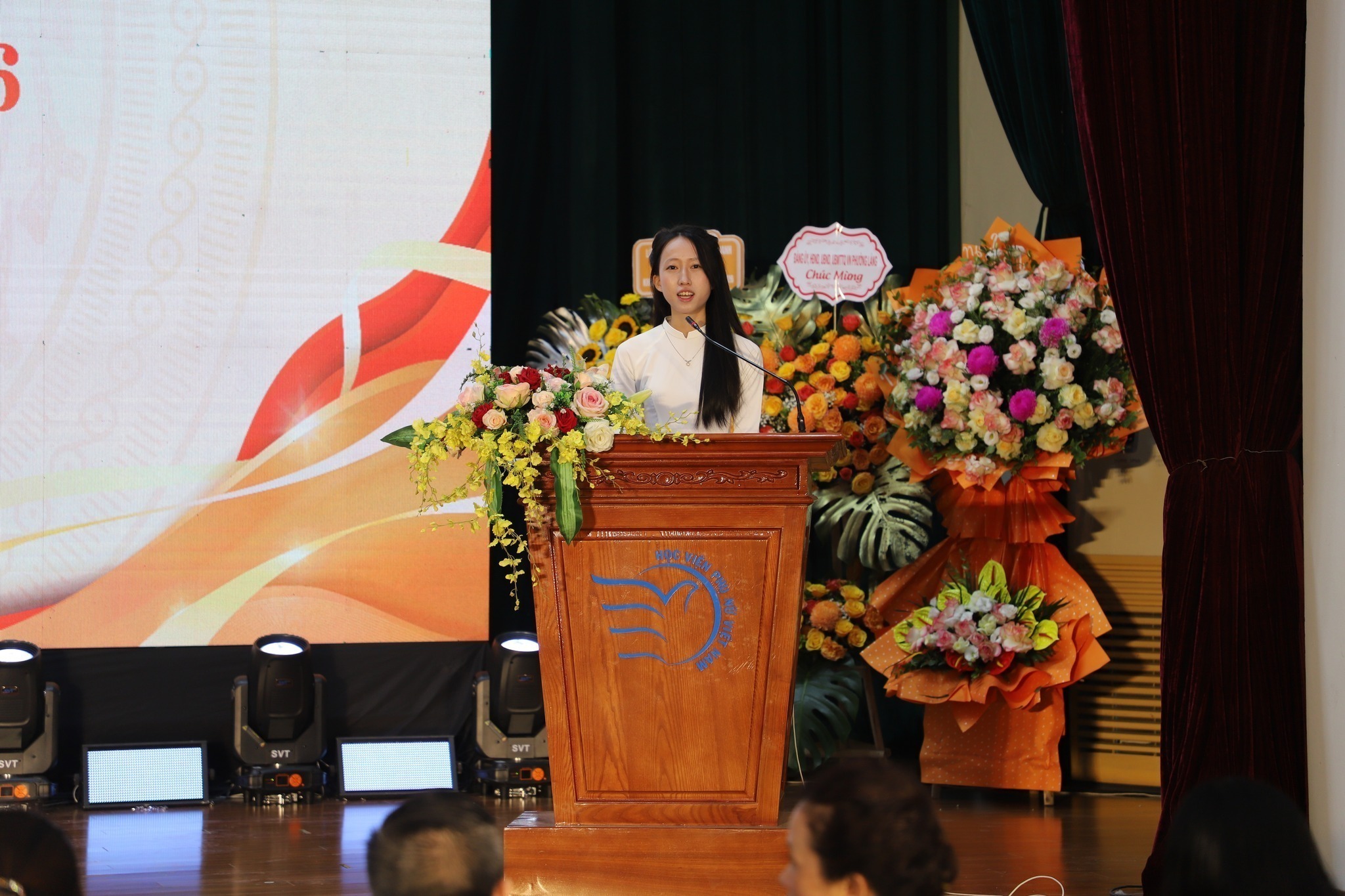 Cũng trong buổi lễ, thay mặt cho tập thể giảng viên Học viện, PGS.TS. Trần Thị Mị Lương – Phó Trưởng khoa Khoa học Cơ bản đã có bài phát biểu truyền cảm hứng tới các thế hệ sinh viên. Bằng những chia sẻ tâm huyết, PGS.TS. Trần Thị Mị Lương khẳng định quyết tâm của đội ngũ giảng viên trong việc đổi mới phương pháp giảng dạy, đẩy mạnh ứng dụng chuyển đổi số và gắn kết chặt chẽ giữa lý thuyết với thực tiễn, nhằm mang đến môi trường học tập hiện đại, hiệu quả hơn. Những chia sẻ của PGS.TS. Trần Thị Mị Lương không chỉ khích lệ tinh thần học tập, nghiên cứu của sinh viên mà còn thể hiện rõ cam kết của toàn thể