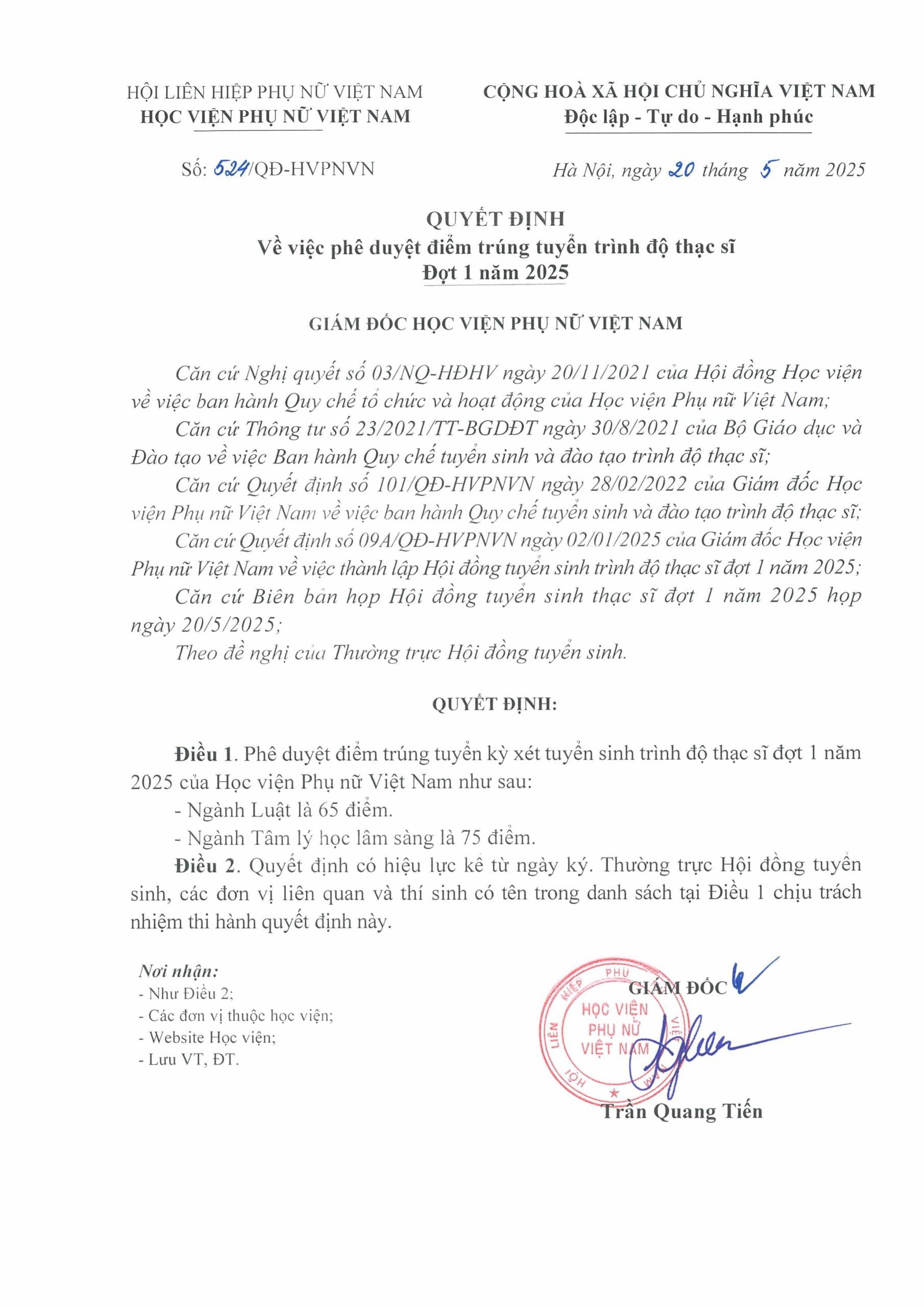 12 thí sinh trúng tuyển hệ đào tạo Thạc sĩ ngành Luật và 30 thí sinh trúng tuyển ngành Tâm lý học lâm sàng sẽ chuẩn bị hồ sơ nhập học theo THÔNG BÁO