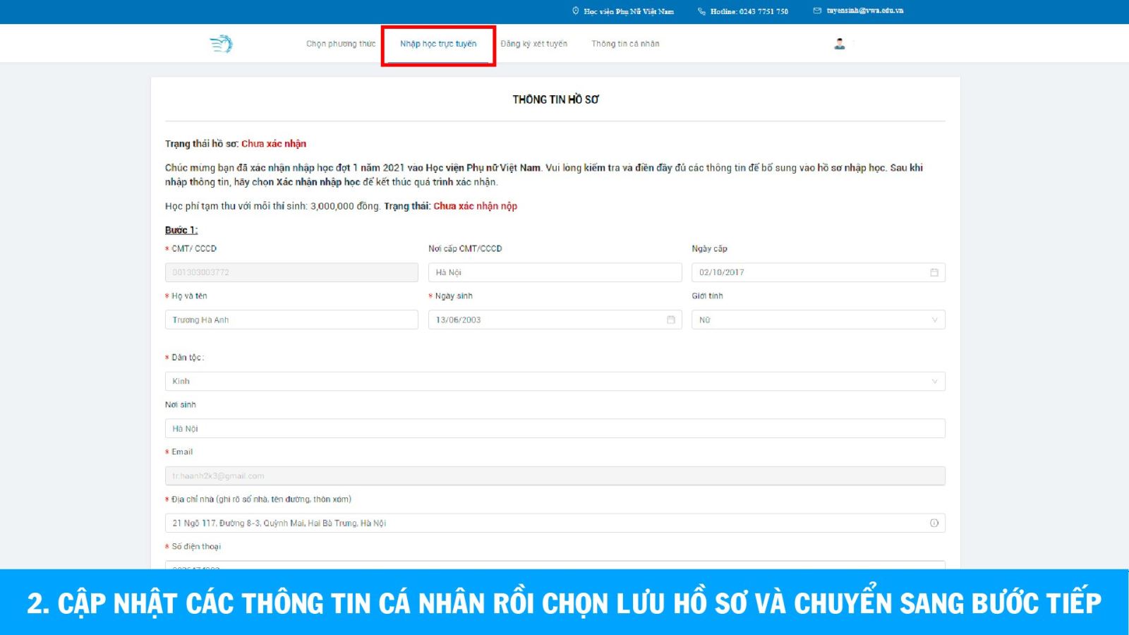 Website: www.tuyensinh.hvpnvn.edu.vn; Email: tuyensinh@vwa.edu.vn;