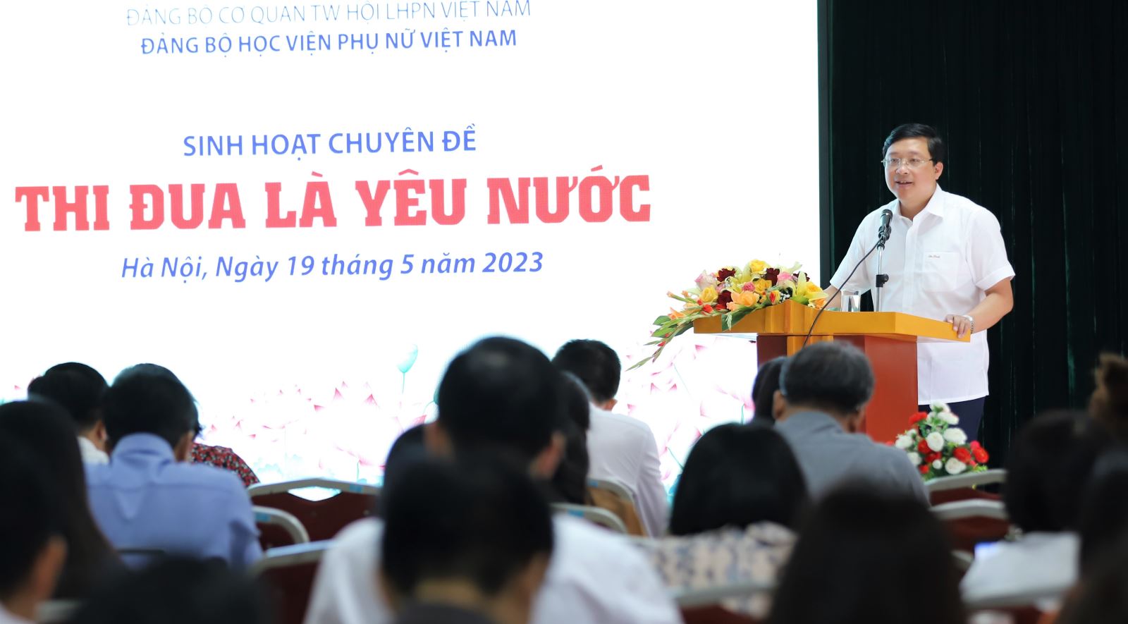 Đại diện Đảng bộ Học viện Phụ nữ Việt Nam, Bí thư Trần Quang Tiến đã ký cam kết thi đua kỷ niệm 75 năm Hồ Chủ tịch ra lời kêu gọi thi đua ái quốc (11/6/1948 – 11/6/2023) và chào mừng kỷ niệm 75 năm Ngày truyền thống Đảng bộ Khối các cơ quan Trung ương (07/11/1948 – 07/11/2023) do Đảng uỷ cơ quan TW Hội LHPN Việt Nam phát động tại chương trình kỉ niệm 133 năm ngày sinh của Bác.