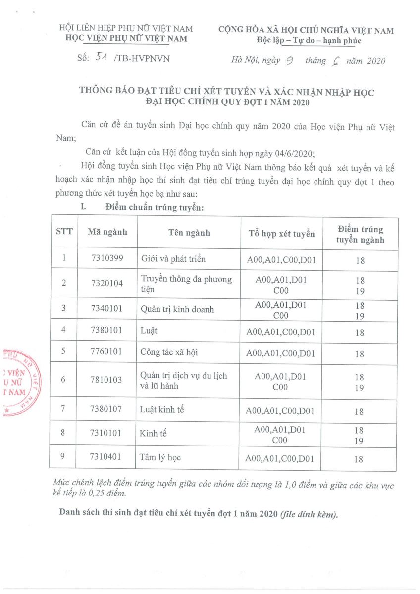 DANH SÁCH THÍ SINH ĐẠT YÊU CẦU XÉT TUYỂN HỌC BẠ ĐỢT 1 NĂM 2020