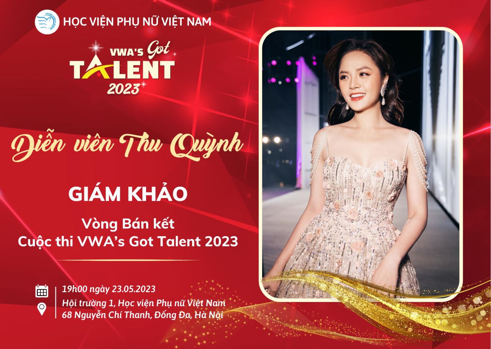 Không chỉ được biết đến với vai trò là diễn viên, diễn viên Thu Quỳnh còn là một người đẹp tài năng, chị từng lọt Top 30 Chung kết Hoa hậu Việt Nam năm 2008. Với sự quý mến dành cho các bạn sinh viên, diễn viên Thu Quỳnh đã nhận lời đồng hành cùng Top 25 thí sinh tại Vòng Bán kết VWA’s Got Talent tới đây. Với những kinh nghiệm dày dặn trong lĩnh vực nghệ thuật, chắc chắn diễn viên Thu Quỳnh sẽ đem đến những chia sẻ, nhận xét góp ý cho các bạn thí sinh và công tâm lựa chọn ra top những thí sinh xuất sắc nhất lọt vào vòng Chung kết