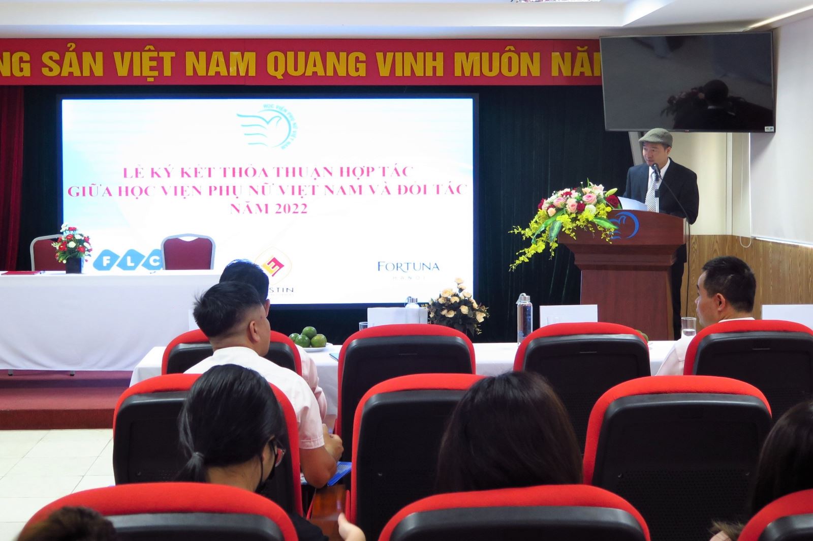 Phát biểu khai mạc lễ ký kết, PGS.TS Trần Quang Tiến khẳng định, đứng trước sự thay đổi nhanh chóng của nhu cầu thị trường lao động các trường đại học nói chung và Học viện Phụ nữ Việt Nam nói riêng đã có những thay đổi từ nội dung, phương pháp, hình thức đào tạo đến các thức quản trị đại học. Với mục tiêu giáo dục toàn diện, chất lượng, bình đẳng, Học viện Phụ nữ Việt Nam đã ký kết trên 50 biên bản ghi nhớ hợp tác với các đơn vị, tổ chức doanh nghiệp trong và ngoài nước đồng thời không ngừng vận động nhằm thay đổi phương pháp dạy học hướng đến việc đào tạo sinh viên đáp ứng nguồn nhân lực chất lượng cao, phù hợp với nhu cầu xã hội. Đặc biệt, trong mối quan hệ hai chiều, dựa trên nền tảng nghiên cứu, giảng dạy, thực hành, Học viện Phụ nữ Việt Nam hi vọng sẽ tham gia tư vấn chiến lược, tư vấn quản lý, xây dựng chính sách,… để thúc đẩy sự phát triển của doanh nghiệp đối tác và nâng cao hiệu quả hợp tác giữa hai bên. Lễ ký kết hôm này là khởi đầu cho chuỗi các hoạt động phối hợp toàn diện từ: đào tạo, trao đổi sinh viên, thực tập, việc làm cho cho sinh viên giữa Học viện Phụ nữ Việt Nam và các đơn vị đối tác. Đặc biệt, trước khi ký kết hợp tác, các doanh nghiệp đã hỗ trợ tiếp nhận sinh viên đến thực tập và có những phản hồi rất tốt. Với sự lớn mạnh không ngừng của Học viện theo xu hướng đa ngành, đa nghề cùng sự phát triển của khoa Quản trị kinh doanh với đông đảo sinh viên theo học các ngành: Du lịch, Kinh tế, Quản trị kinh doanh, Học viện hi vọng sự hợp tác này sẽ được cụ thể hóa và đạt được những kết quả nổi bật đem lại nhiều giá trị lợi ích cho sinh viên.