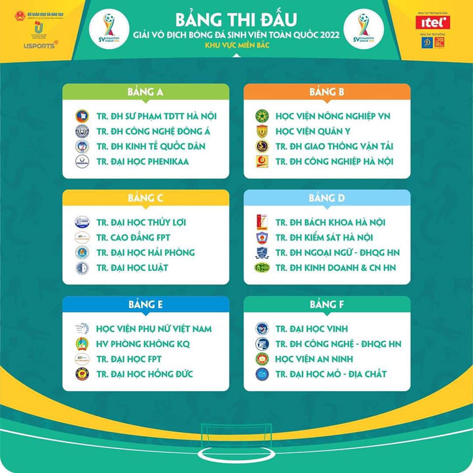 Vòng loại của giải Vô địch bóng đá sinh viên toàn quốc 2022 sẽ được tổ chức tại 9 khu vực trên cả nước dưới hình thức thi đấu bóng đá nam (11 người). Trường Đại học Bách khoa Hà Nội được Bộ Giáo dục và Đào tạo chọn là đơn vị đăng cai tổ chức giải đấu này tại khu vực phía Bắc với sự tham gia của 24 trường thuộc địa bàn: Hà Nội, Thanh Hóa, Nghệ An…