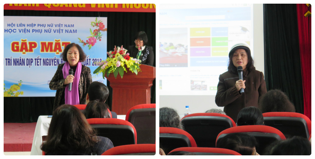 TS. Trần Quang Tiến bày tỏ niềm vui mừng được đón các đồng chí nguyên là lãnh đạo Trường Cán bộ Phụ nữ TW, giảng viên, nghiên cứu viên, viên chức và người lao động đã nghỉ hưu về dự buổi gặp mặt cuối năm không chỉ là truyền thống mà còn là sự động viên, khích lệ to lớn đối với thế hệ lãnh đạo và viên chức Học viện hôm nay. Đồng thời, báo cáo nhanh tình hình hoạt động của Học viện Phụ nữ Việt Nam trong năm 2017 và nhiệm vụ trọng tâm trong năm 2018: