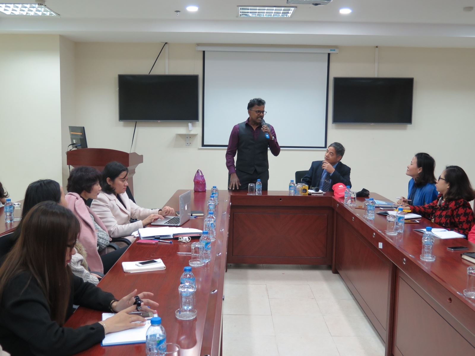 Tham dự hội thảo có ông Victor, giảng viên Tiếng Anh Trung tâm Việt Sing; ông Đoàn Đức Lưu, phiên dịch viên; đại diện các đơn vị của Học viện.