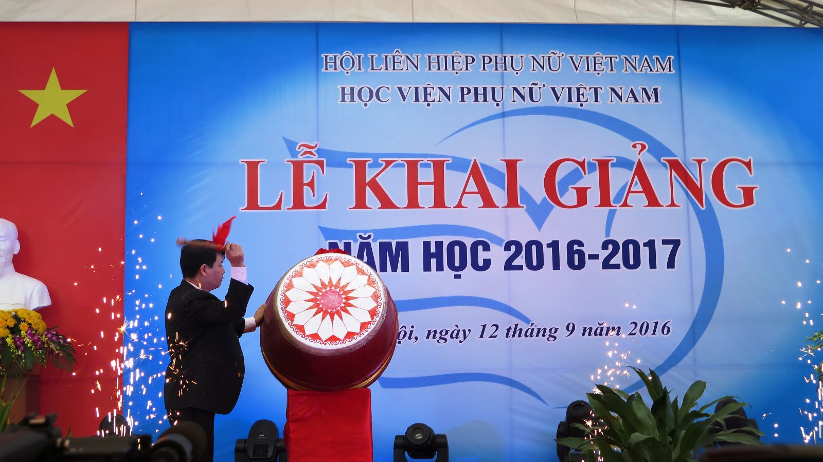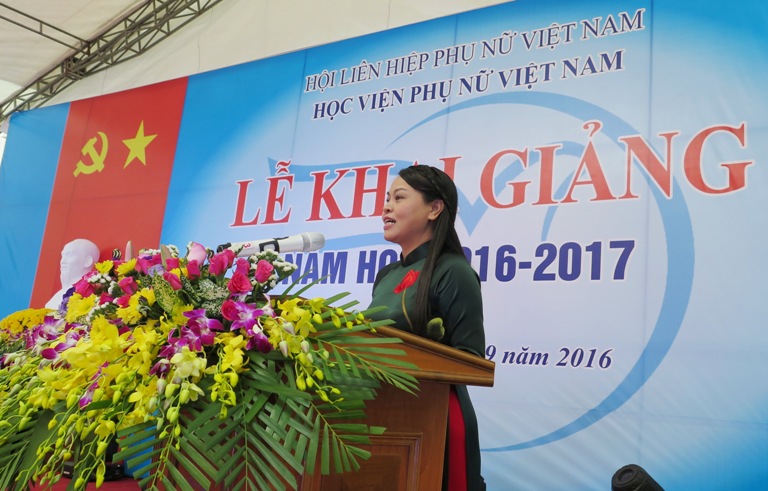 TS. Trần Quang Tiến đã điểm lại các thành tích nổi bật trong công tác của toàn thể các đơn vị, cán bộ công nhân viên, học sinh, sinh viên Nhà trường năm học vừa qua. Việc tổ chức đào tạo đại học, trung cấp, bồi dưỡng cán bộ Hội LHPN các cấp, công tác nghiên cứu khoa học, công tác xây dựng, ban hành hệ thống quy chế, quy định đều được tập trung đẩy mạnh. Từ những kết quả tích cực trên tất cả các mặt, nhất là kết quả tuyển sinh đủ chỉ tiêu ngay trong đợt I năm 2016  vừa diễn ra; có thể khẳng định: Học viện Phụ nữ Việt Nam đã và đang xây dựng được hình ảnh, vị thế của mình là một cơ sở giáo dục đại học có tổ chức giảng dạy nghiêm túc, không ngừng đổi mới, nâng cao chất lượng đào tạo và đáp ứng nhu cầu của người học. Giám đốc cũng nêu lên các định hướng trọng tâm trong năm học 2016-2017 và chiến lược phát triển tiếp theo của Nhà trường, bày tỏ mong muốn trong năm học mới, toàn thể cán bộ, giảng viên, nhân viên và toàn thể các em học sinh, sinh viên trong trường cùng đồng lòng, chung tay, chung sức vì sự phát triển bền vững của Học viện Phụ nữ Việt Nam và góp phần đáp ứng nhu cầu nguồn nhân lực chất lượng cao thời kỳ hội nhập, phát triển sự nghiệp giáo dục đào tạo chung của đất nước.