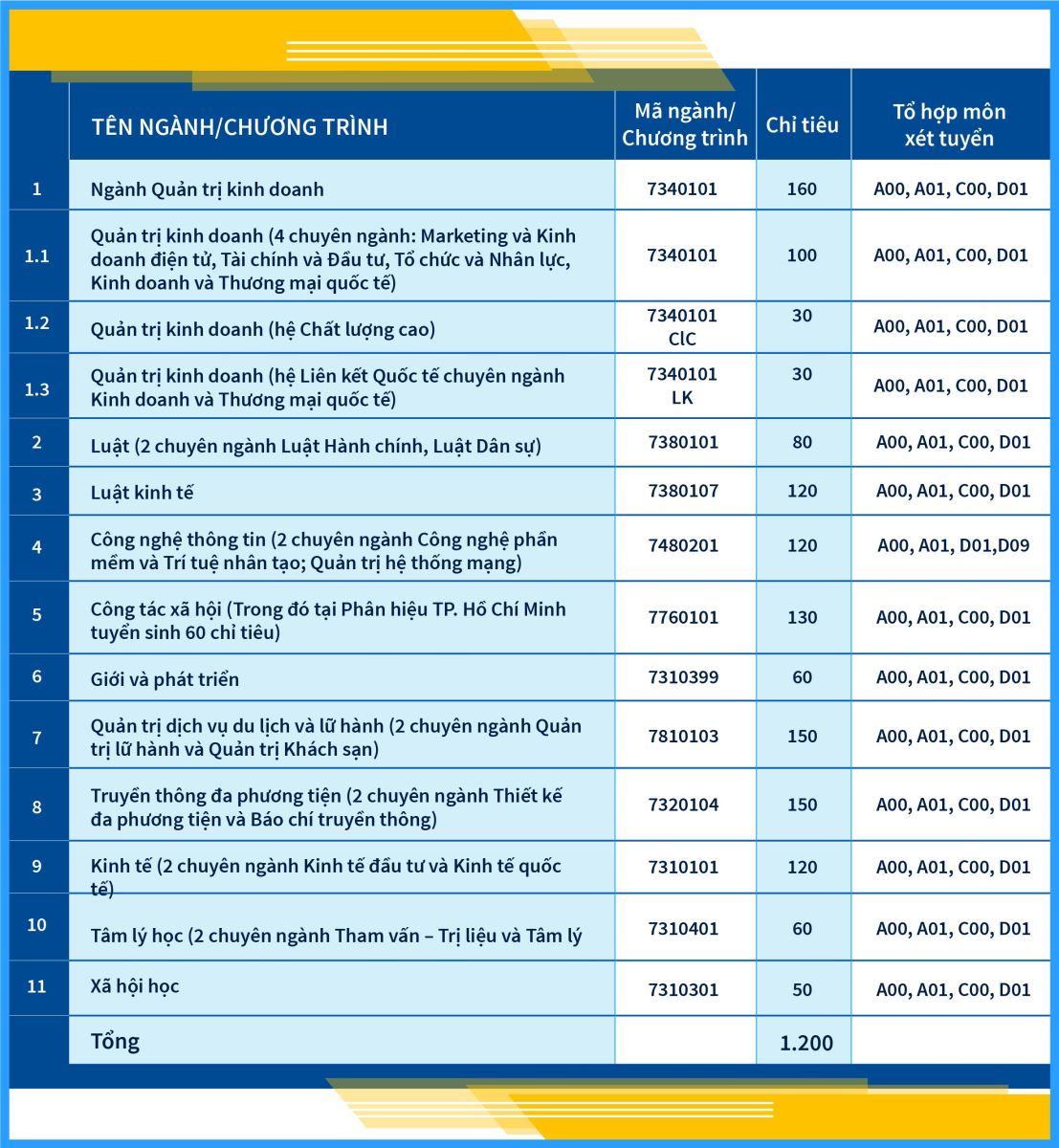 Học viện xét tuyển các tổ hợp khối A00, A01, C00, D01, D09 đối với tất cả các ngành đào tạo.
