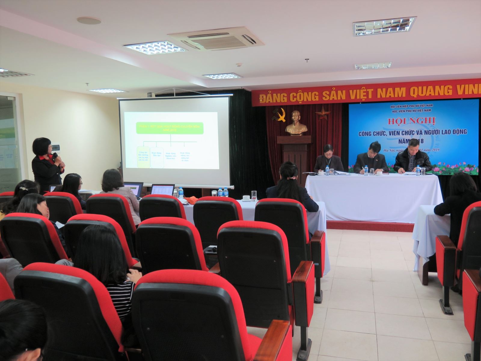 Dưới sự lãnh đạo và chỉ đạo sát sao của Đoàn Chủ tịch Hội Liên hiệp phụ nữ Việt Nam, Đảng ủy, Ban Giám đốc học viện, với tinh thần trách nhiệm cao, nghiêm chỉnh thực hiện kỷ cương, quy chế, nội quy phát huy tính năng động, sáng tạo trong thực hiện nhiệm vụ, tự tin, tự khẳng định và tự tiến bộ về mọi mặt của toàn thể công chức, viên chức, người lao động, Học viện Phụ nữ Việt Nam hy vọng sẽ thực hiện thắng lợi phương hướng, kế hoạch công tác năm 2019 bảo đảm tiến độ và chất lượng ngay từ những tháng đầu năm.