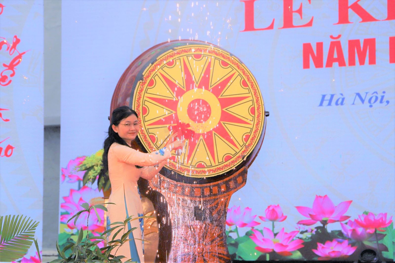 Phó chủ tịch Hội LHPN Việt Nam Tôn Ngọc Hạnh đã gióng hồi trống khai trường giòn giã trong những tràng pháo tay nồng nhiệt của quan khách và cán bộ, viên chức, người lao động cùng sinh viên Học viện báo hiệu một năm học mới đầy hân hoan, khí thế và thành công.