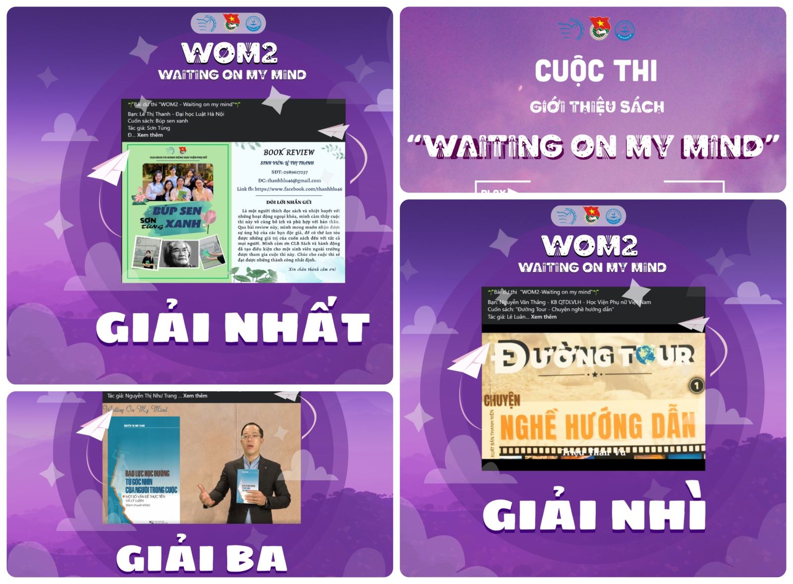 Câu lạc bộ Sách và Hành động Học viện Phụ nữ Việt Nam xin gửi lời chúc mừng tới các bạn sinh viên, học viên đã đạt được giải thưởng của cuộc thi. Ngoài ra, Câu lạc bộ cũng gửi lời cảm ơn tới tất cả các bạn đã gửi bài dự thi cuộc thi Giới thiệu sách: WOM2 – WAITING ON MY MIND. Rất mong chờ sự tham gia của các bạn ở những cuộc thi tiếp theo.