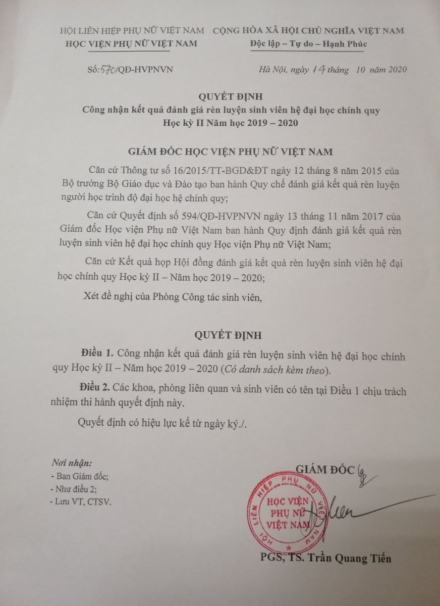 Kết quả đánh giá rèn luyện HK 2 năm học 2019-2020