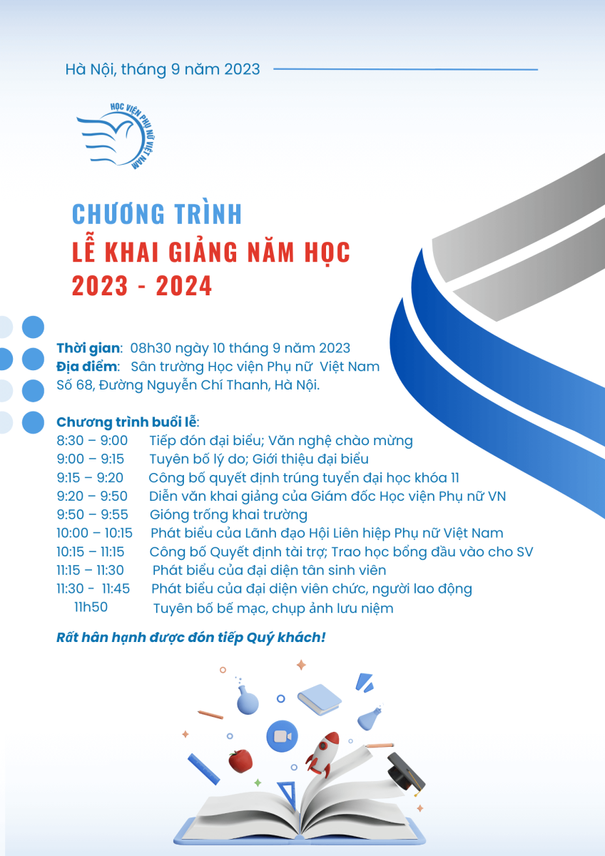 Lễ khai giảng sẽ là dịp để các bạn tân sinh viên làm quen với thầy cô, bạn bè và môi trường mới. Đây cũng là dịp để tập thể cán bộ, viên chức và các bạn sinh viên Học viện nhìn lại những thành tích học tập trong một năm học vừa qua và hân hoan chào đón năm học mới 2023 – 2024 với tinh thần, khí thế, khát vọng, niềm tin vào những thành công mới!