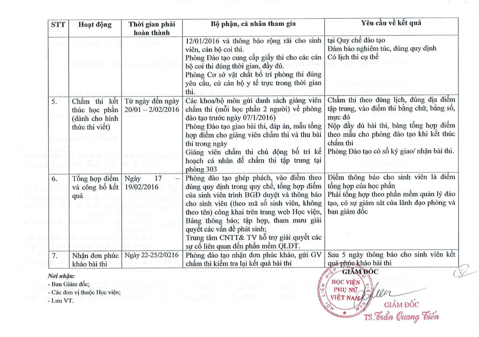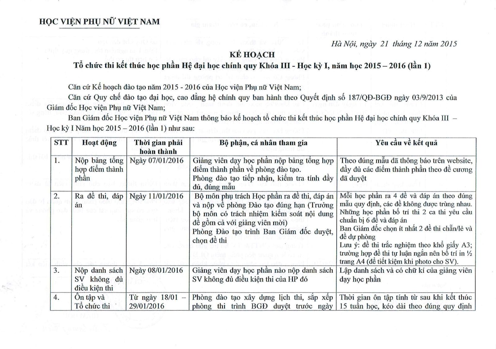 Lịch thi khóa III - Học kỳ I, năm học 2015 - 2016