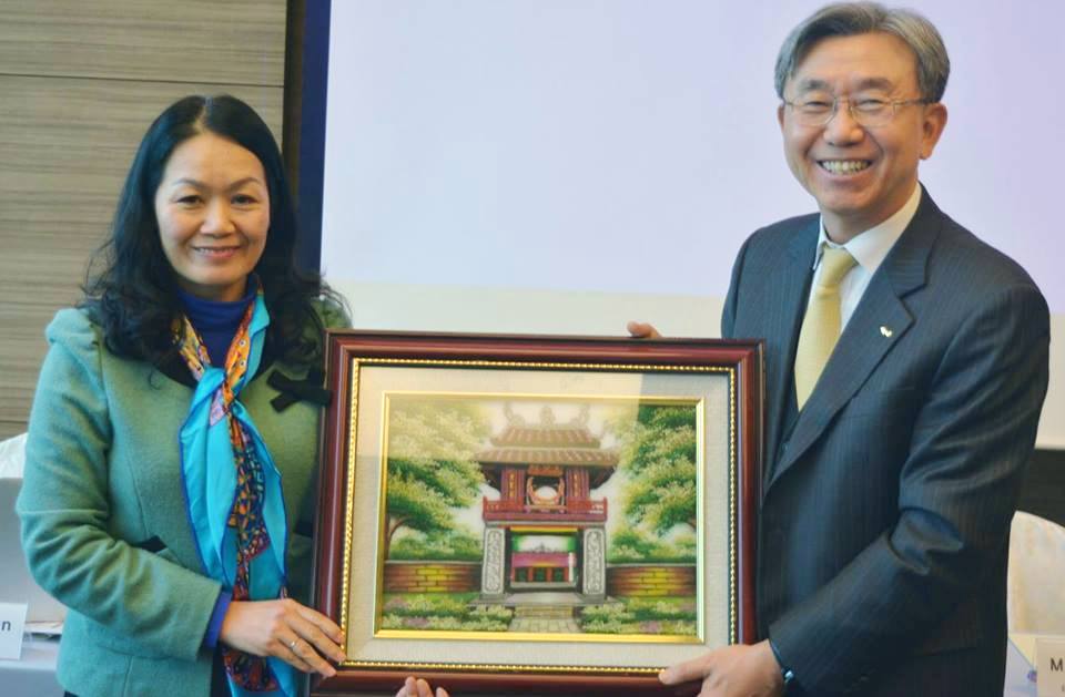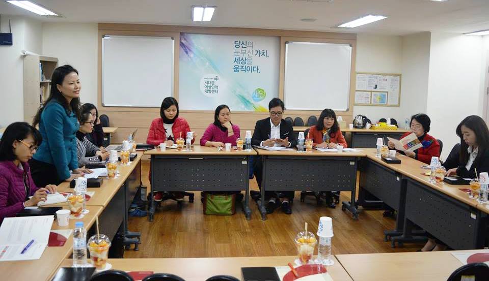 Một nhiệm vụ vô cùng quan trọng của Đoàn là dự Hội thảo, trao đổi, đánh giá giữa kỳ nghiên cứu xây dựng kế hoạch chiến lực đào tạo nguồn nhân lực nữ chất lượng cao ở miền Bắc Việt Nam. Các chuyên gia được mời vào đoàn chủ trì và thảo luận tại Hội thảo là các Giáo sư, nghiên cứu viên đến từ các trường Đại học danh tiếng của Hàn Quốc và có cả nhà quản lý của Ngân hàng tại Seoul như: bà Jang Hye Yeong, Khoa Chính trị Quốc tế – Đại học Chung Yang; bà Kwon Sunmi, Viện nghiên cứu tuyển dụng lao động – Đại học Giáo dục kỹ thuật Hàn Quốc; bà Na Seon Eun, Viện nghiên cứu phụ nữ Hàn Quốc – Đại học phụ nữ Ewha; ông Kim Bong Shin, Công ty Gallup Hàn Quốc…