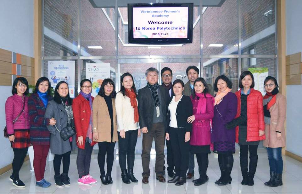 Điểm học tập mô hình cuối cùng của chúng tôi là Đại học Korea Polytechnics. Trường được thành lập từ năm 1968 với 34 phân hiệu trên cả nước. Thực hiện chính sách của Chính phủ Hàn Quốc về việc kích thích sự tham gia của phụ nữ vào hoạt động kinh tế trong đó có chính sách xây dựng trường học thân thiện với phụ nữ, Đại học Korea Polytechnics đã lựa chọn mở thêm 6 lĩnh vực dịch vụ trong quá trình xây dựng trường học thân thiện với phụ nữ, đó là: công nghiệp truyền hình, bảo hộ thông tin, thiết kế, dịch vụ y tế, lĩnh vực về nội dung… Tại đây, Đoàn được đến thăm quan các khoa mới thành lập của trường: khoa nấu ăn, khoa hành chính trong các bệnh viện, khoa truyền thông đa phương tiện, khoa công nghệ thời trang. Số học viên nữ tại các khoa này chiếm tỷ lệ rất cao (từ 40% trở lên). Sau khi tốt nghiệp, nhà trường sẽ kết nối với các doanh nghiệp để tìm việc cho các em.