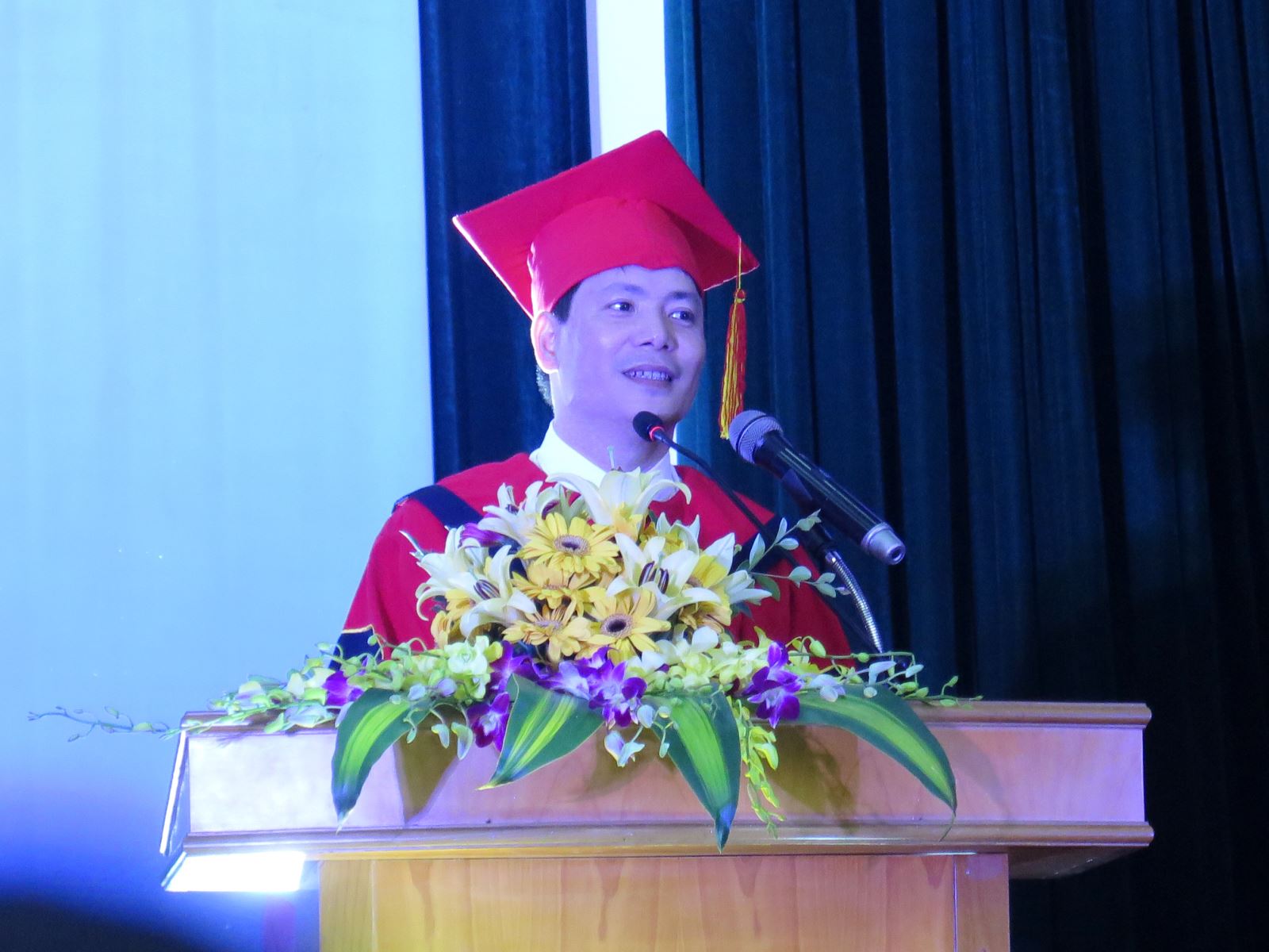 Lời đầu tiên, thay mặt Ban Giám đốc và toàn thể các cô giáo, thầy giáo và viên chức Học viện xin nồng nhiệt chúc mừng 152 em sinh viên khóa 1 thuộc 2 ngành CTXH và QTKD đã hoàn thành xuất sắc chương trình đào tạo 4 năm học của mình. Trong đó có 12 em đạt kết quả loại giỏi và hơn 70% đạt kết quả loại khá. Xin đề nghị toàn thể hội trường 1 tràng pháo tay thật to, giòn để chúc mừng các em.