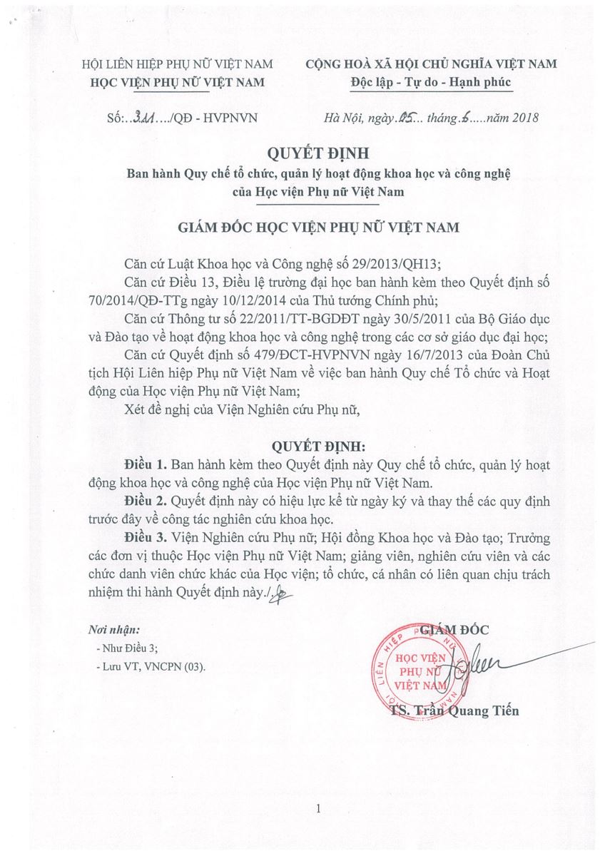Tin tứcQuy chế tổ chức, quản lý hoạt động khoa học, công nghệ của Học viện Phụ nữ Việt Nam Posted on Tháng Sáu 5, 2018 by admin(full) 05 Th6 Mời bạn đọc xem nội dung chi tiết của Quy chế tổ chức, quản lý hoạt động khoa học, công nghệ của Học viện Phụ nữ Việt Nam TẠI ĐÂY Mời bạn đọc xem các mẫu đăng ký TẠI ĐÂY admin(full) Học viện Phụ nữ Việt Nam phát động cuộc thi: Ý tưởng khởi nghiệp sáng tạo dành cho nữ sinh viên 2018. Hội nghị sơ kết công tác 6 tháng đầu năm 2018 và triển khai nhiệm vụ 6 tháng cuối năm 2018
