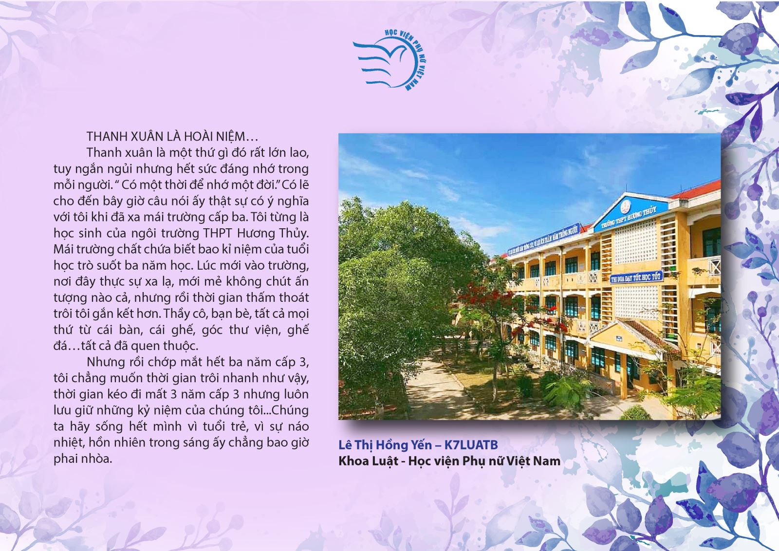 Giải Nhì: Lê Thị Hồng Yến – K7 Luật B, HV Phụ nữ Việt Nam