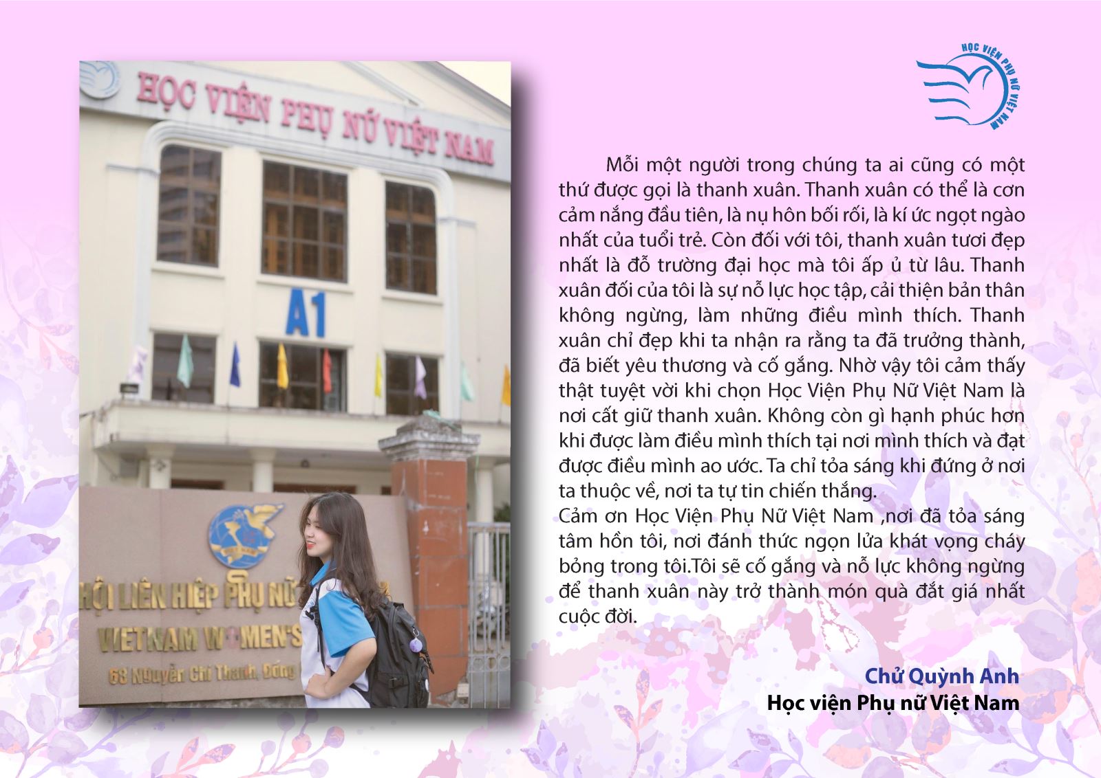 Giải Nhất: Chử Quỳnh Anh – Khoa Truyền thông ĐPT, HV Phụ nữ Việt Nam