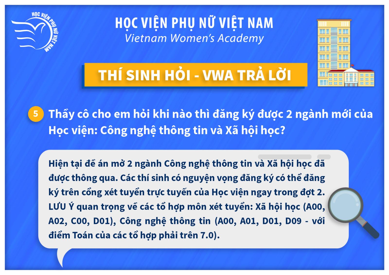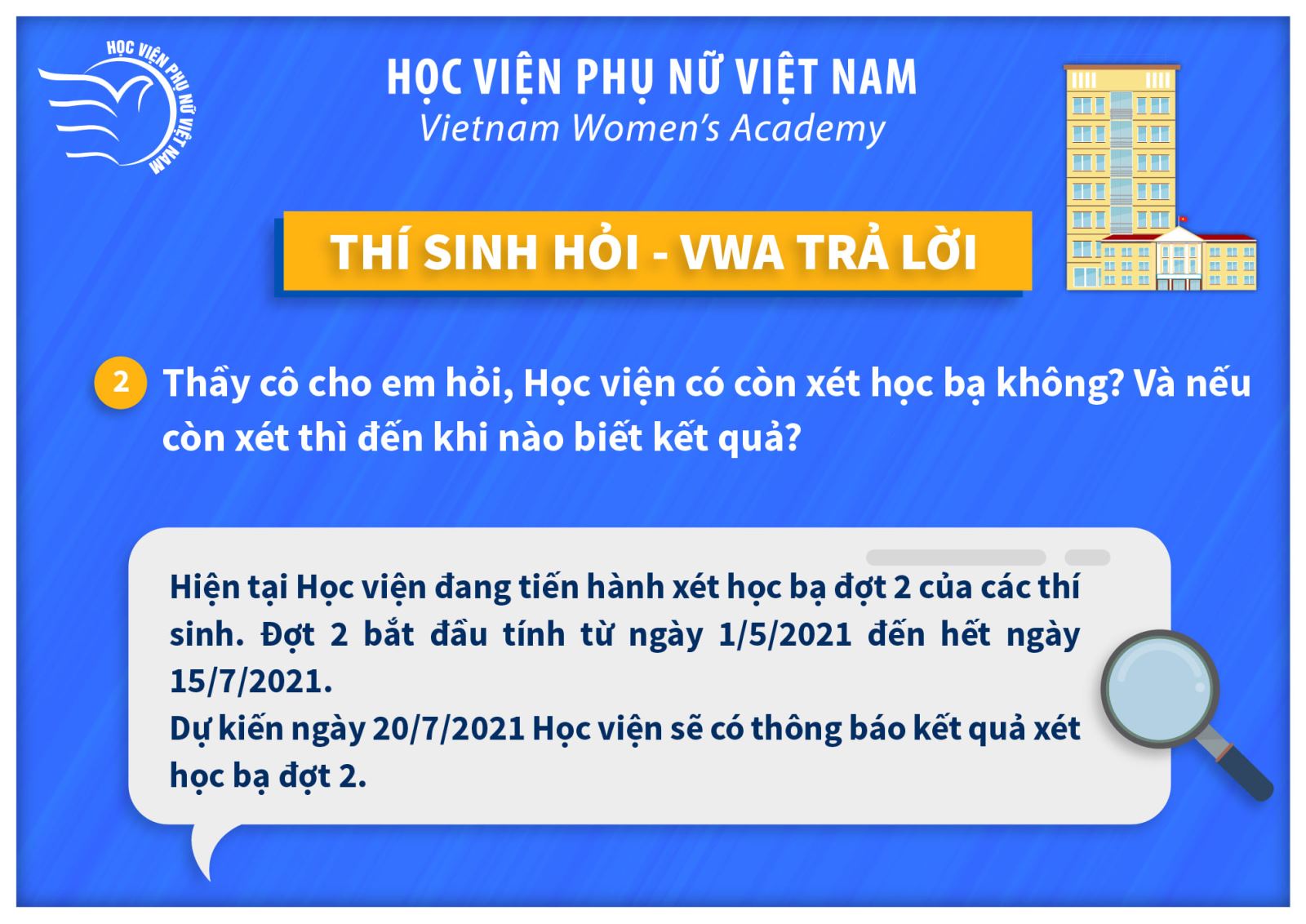 Tin tứcThí sinh hỏi – VWA trả lời (P1) Posted on Tháng Bảy 11, 2021 by admin(full) 11 Th7 admin(full) Lưu ý mốc thời gian tuyển sinh quan trọng năm 2021Thông báo thi chuẩn đầu ra Tiếng Anh đợt 3 năm học 2020-2021