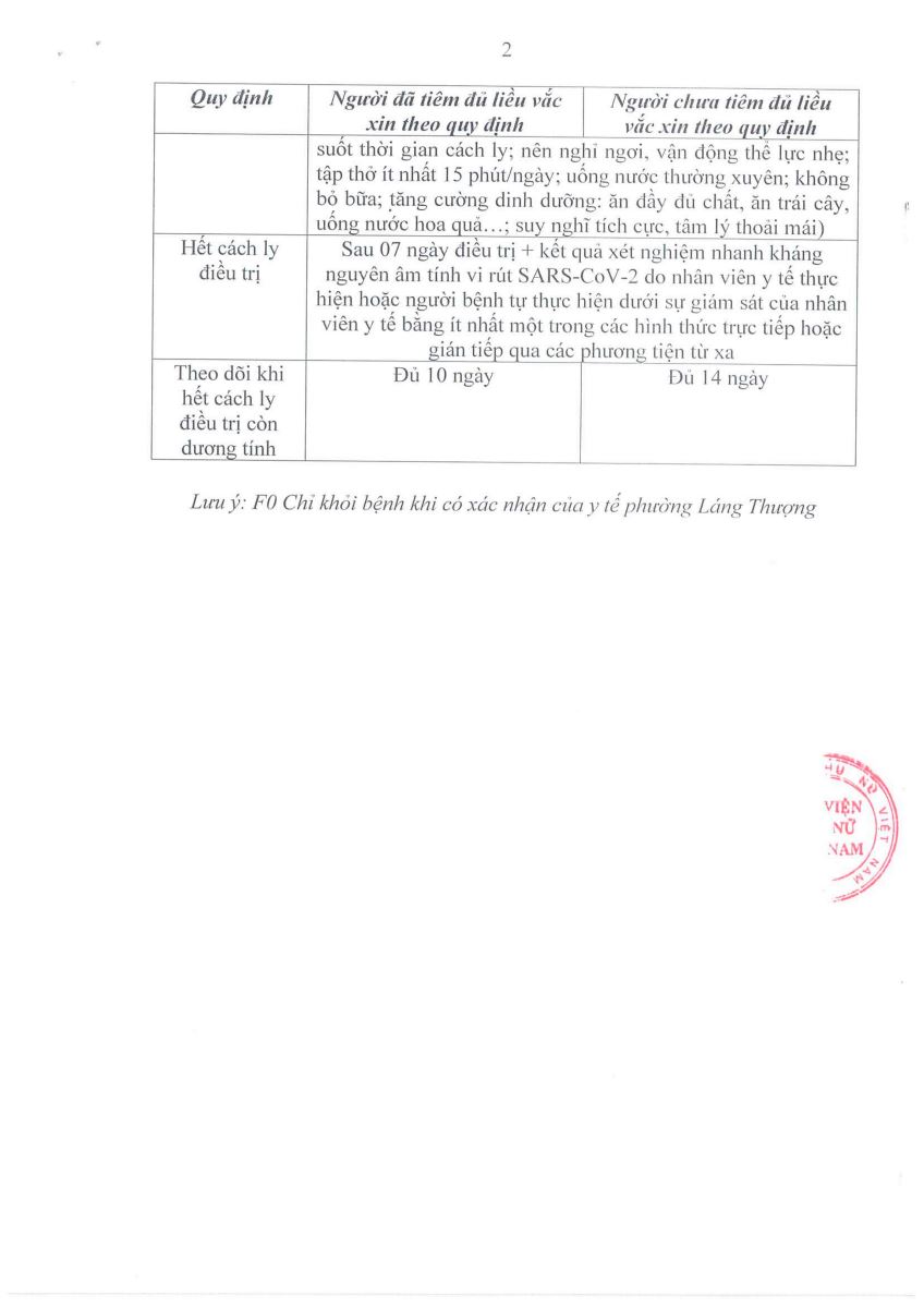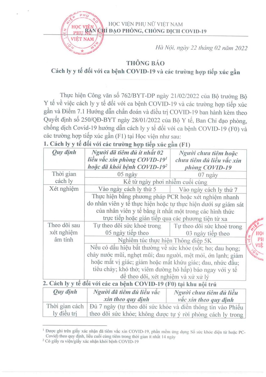 Thông báo cách ly y tế đối với các ca bệnh Covid – 19 và trường hợp tiếp xúc gần