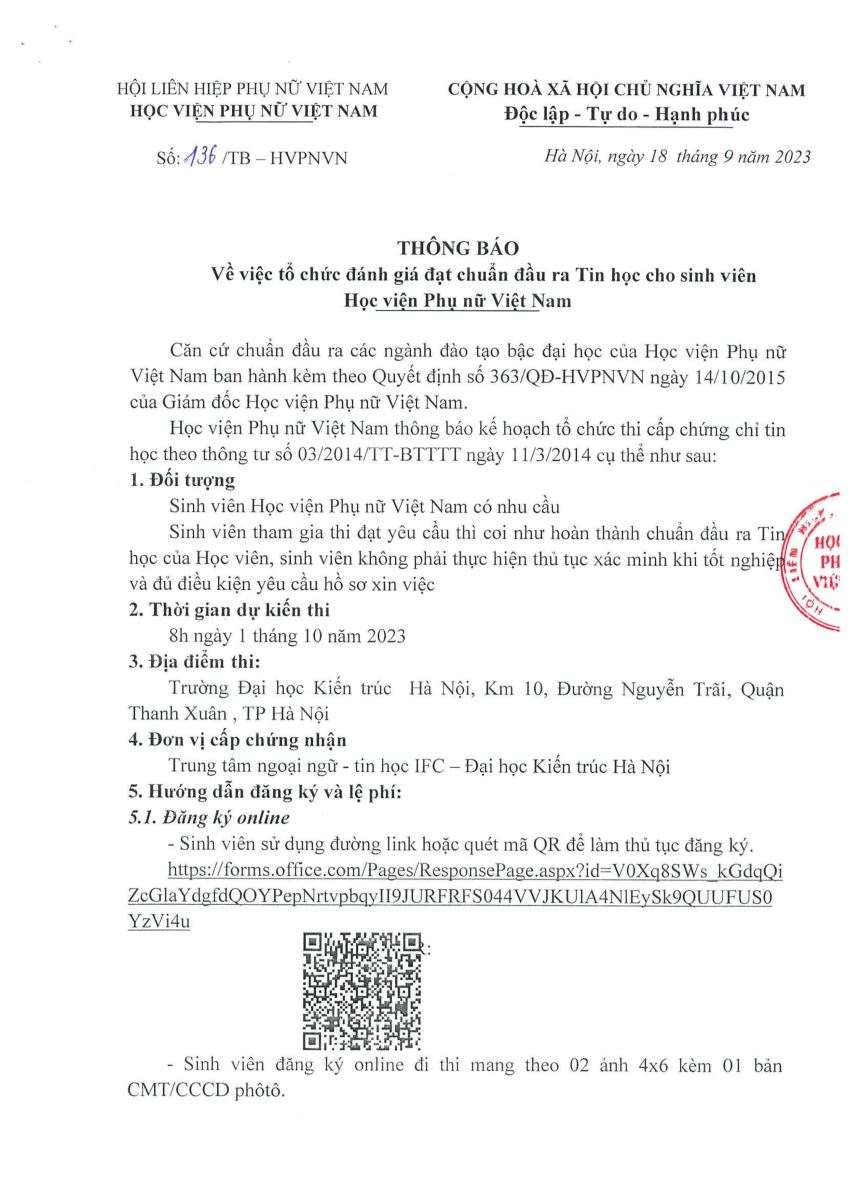 Thông báo lịch đánh giá chuẩn đầu ra Tin học dành cho sinh viên