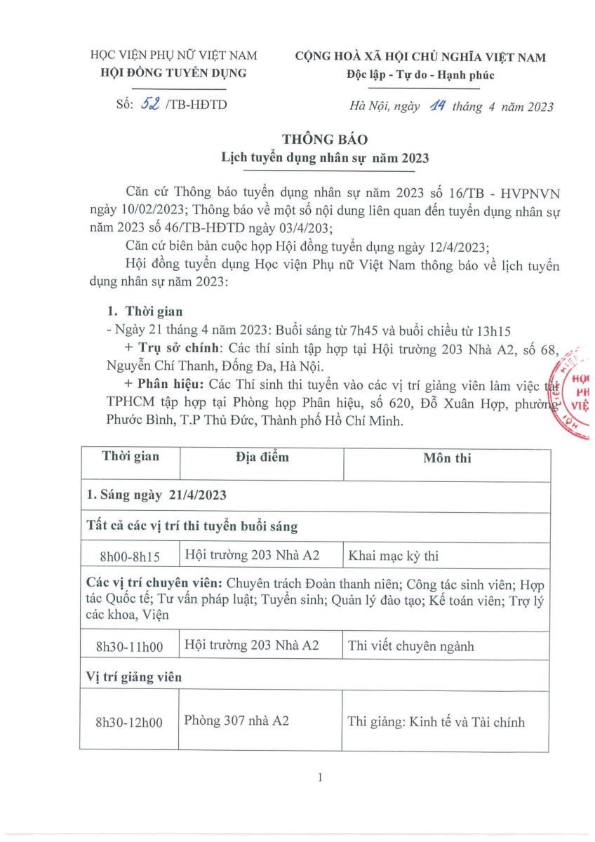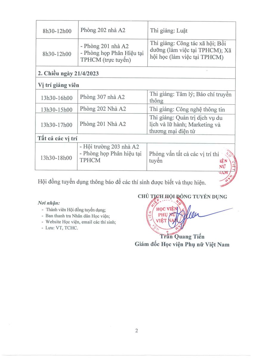 Thông báo lịch thi tuyển nhân sự năm 2023