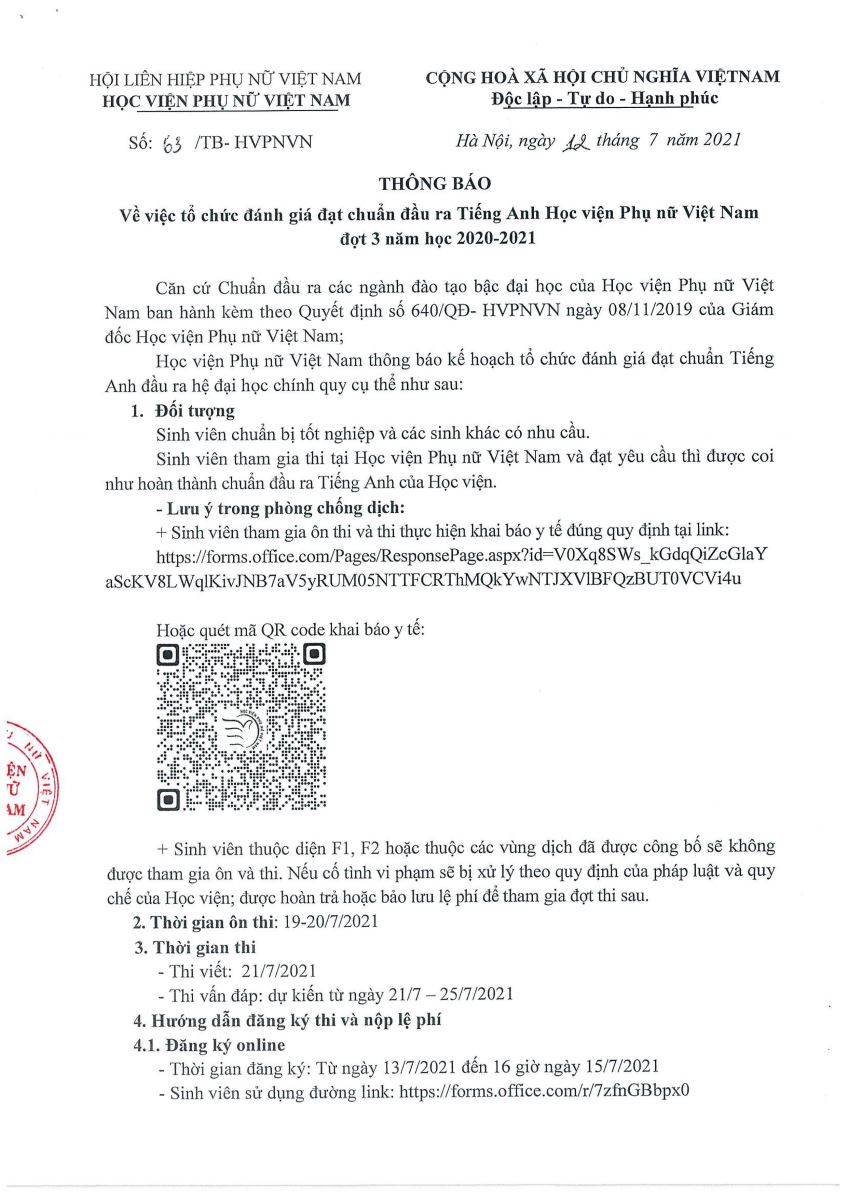 Tin tứcThông báo thi chuẩn đầu ra Tiếng Anh đợt 3 năm học 2020-2021 Posted on Tháng Bảy 12, 2021 by admin(full) 12 Th7 MỜI BẠN ĐỌC ĐĂNG KÝ THI CHUẨN ĐẦU RA TIẾNG ANH TẠI ĐÂY HOẶC ĐĂNG KÝ BẰNG MÃ QR TRONG THÔNG BÁO. admin(full) Thí sinh hỏi – VWA trả lời (P1)THÔNG BÁO ĐIỂM ĐẠT NGƯỠNG XÉT TUYỂN HỌC BẠ ĐỢT II/2021