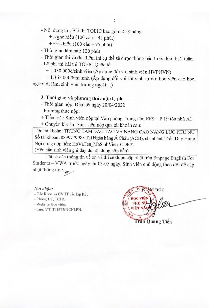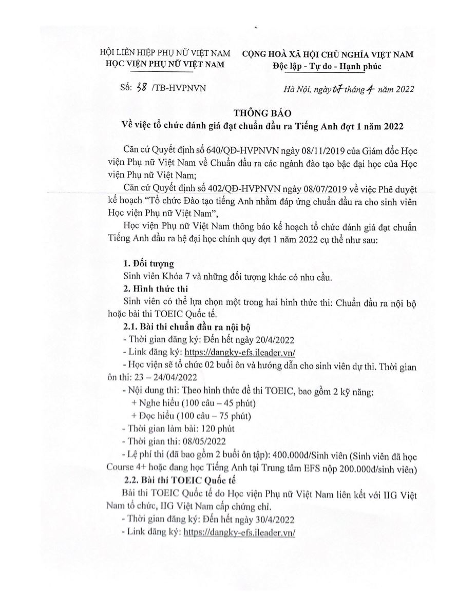 Thông báo tổ chức thi chuẩn đầu ra Tiếng Anh đợt 1 năm 2022