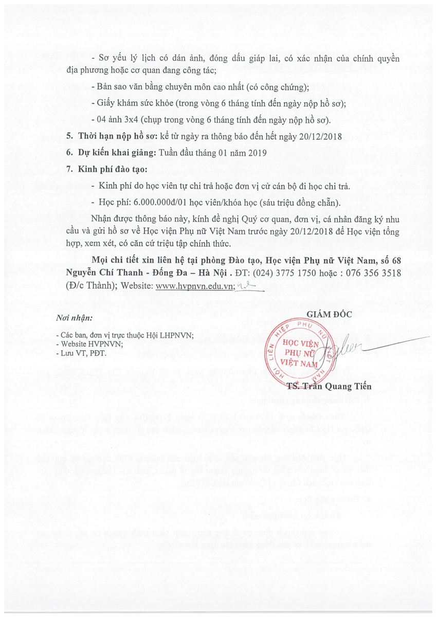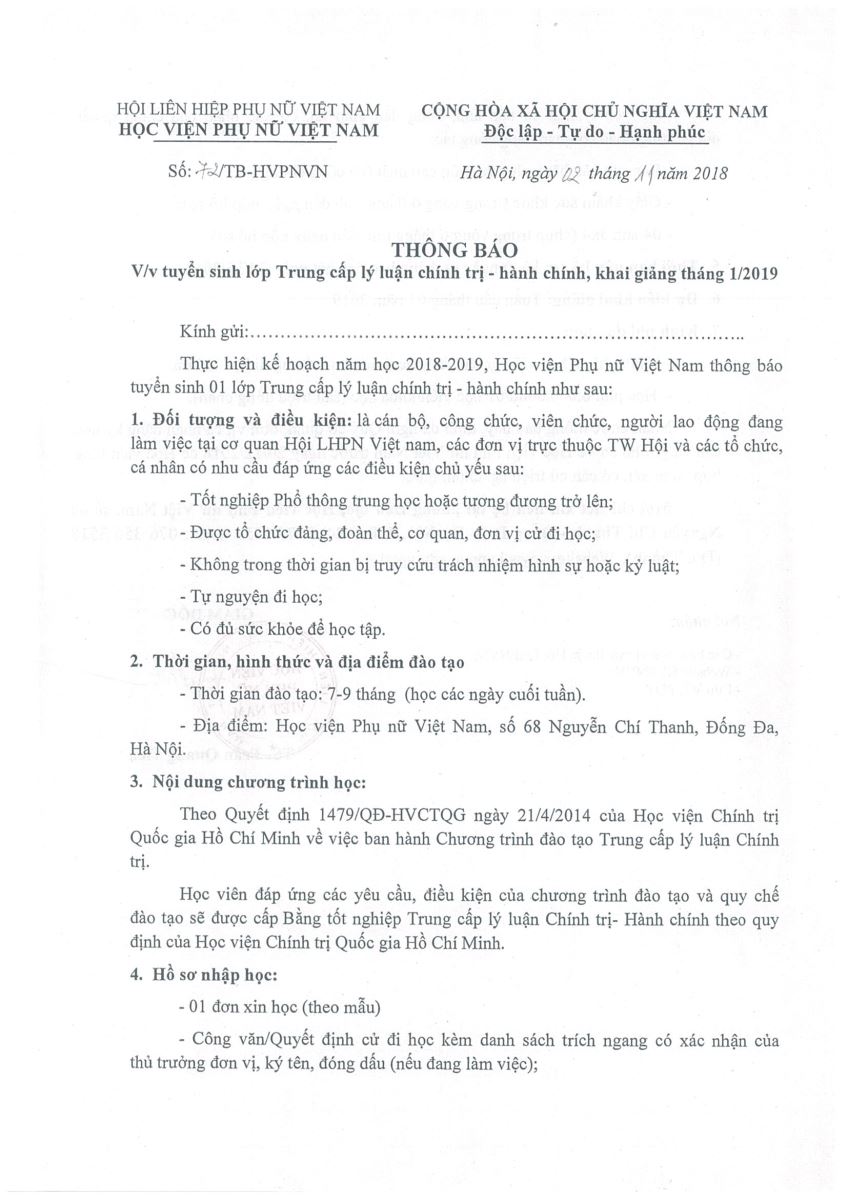 THÔNG BÁO TUYỂN SINH LỚP TRUNG CẤP LLCTHC KHAI GIẢNG THÁNG 1/2019