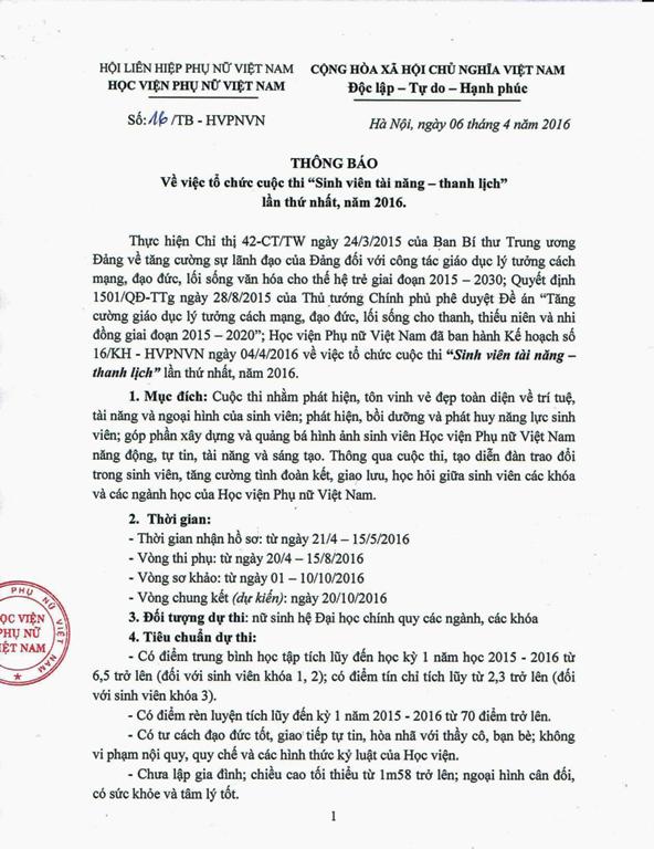 Thông báo về cuộc thi Sinh viên tài năng - thanh lịch 2016