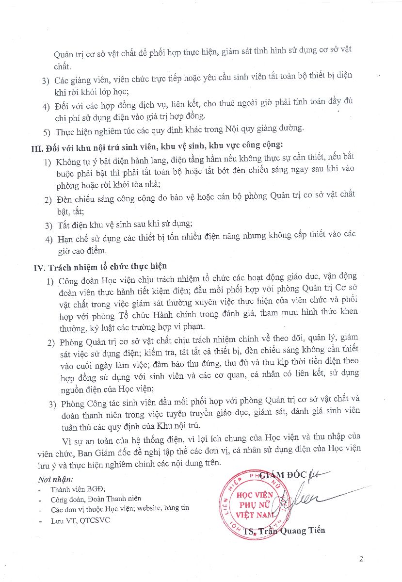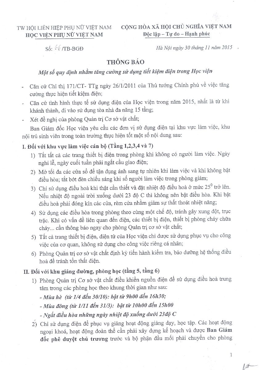 Thông báo về quy định nhằm tăng cường tiết kiệm điện