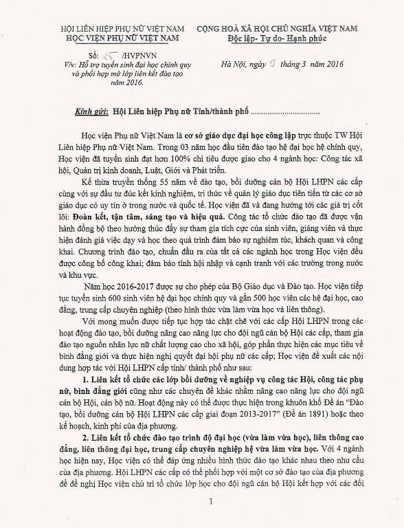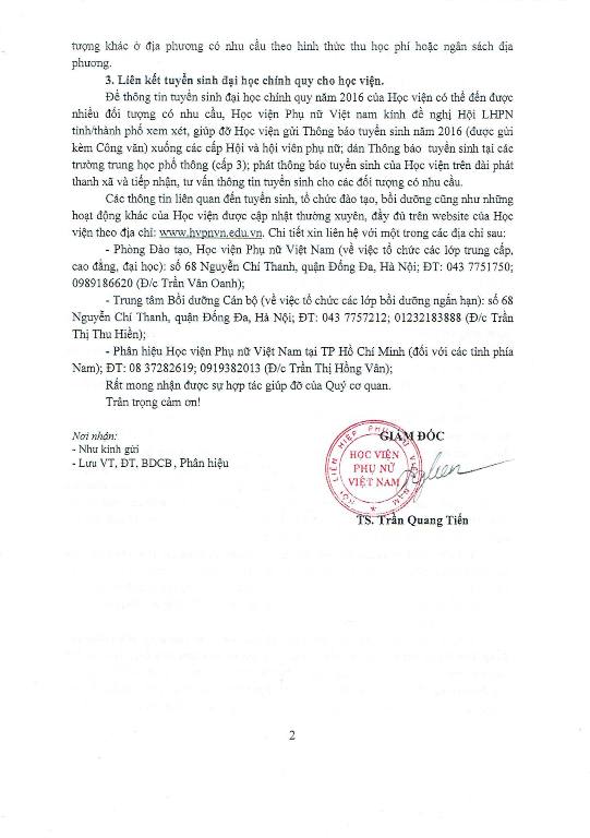 Thông tin về việc liên kết đào tạo và hỗ trợ tuyển sinh năm 2016