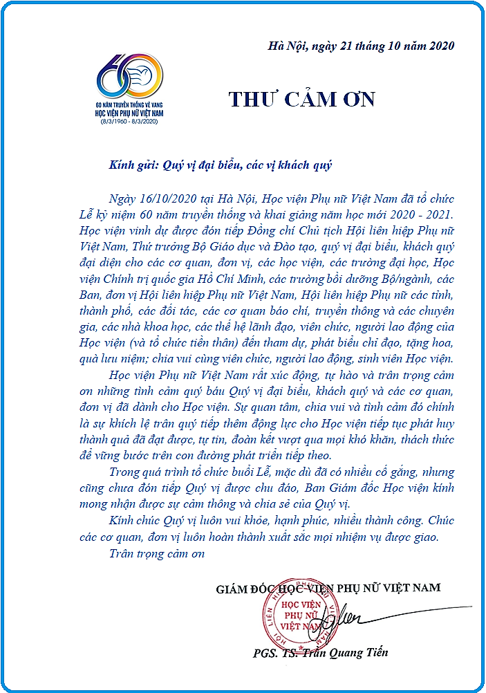 THƯ CẢM ƠN!