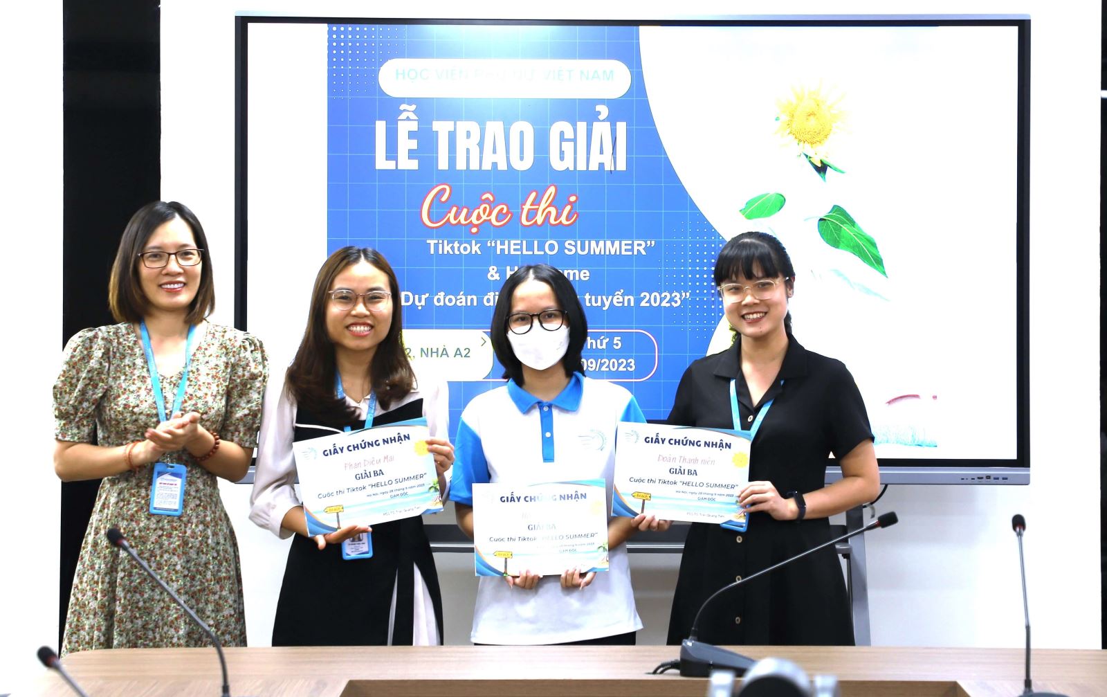 Buổi lễ trao giải cho các tập thể và cá nhân tham gia 2 cuộc thi đã diễn ra thành công tốt đẹp, đây cũng là hoạt động khép lại một mùa tuyển sinh thành công của Học viện Phụ nữ Việt Nam. Hy vọng rằng khoảng thời gian tham gia các cuộc thi đã để lại nhiều niềm vui cho các bạn, chúc các bạn đạt được nhiều thành công trong học tập và cuộc sống.