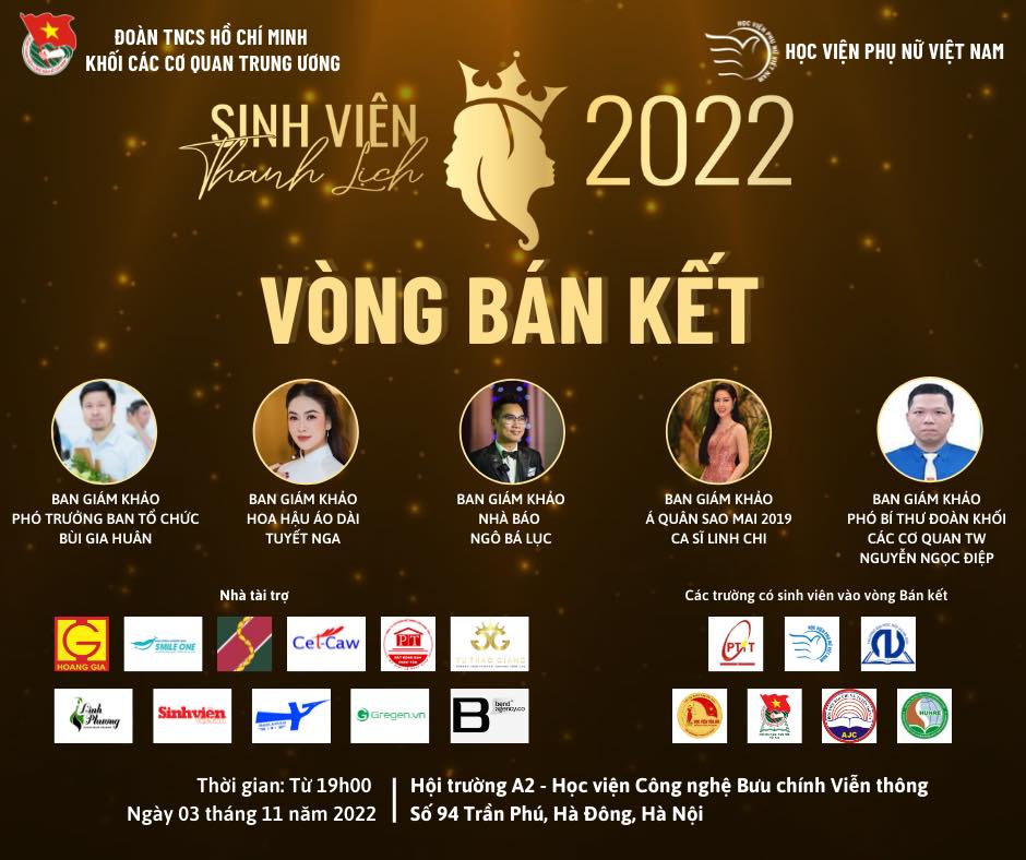 Trải qua vòng sơ khảo, 36 thí sinh xuất sắc đến từ Học viện Phụ nữ Việt Nam, Học viện Công nghệ Bưu chính viễn thông, Học viện Báo chí và tuyên truyền, Học viện Thanh thiếu niên Việt Nam, Đại học Tài nguyên môi trường, Đại học Nội vụ Hà Nội bước vào vòng bán kết.
